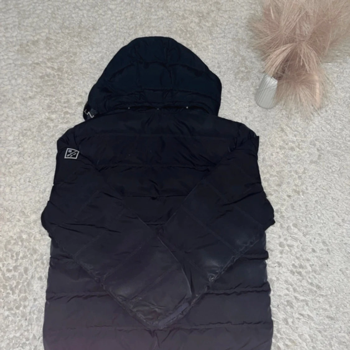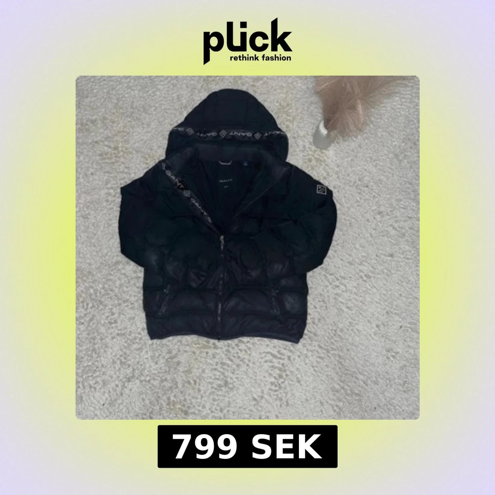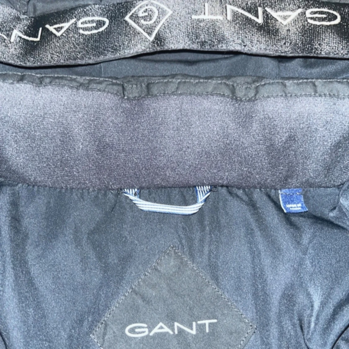 Svart pufferjacka från GANT med stor huva och logotyp på ärmen. Jackan har dragkedja framtill och GANT-tryck på huvkanten. Perfekt för kalla dagar och riktigt snygg streetstil.