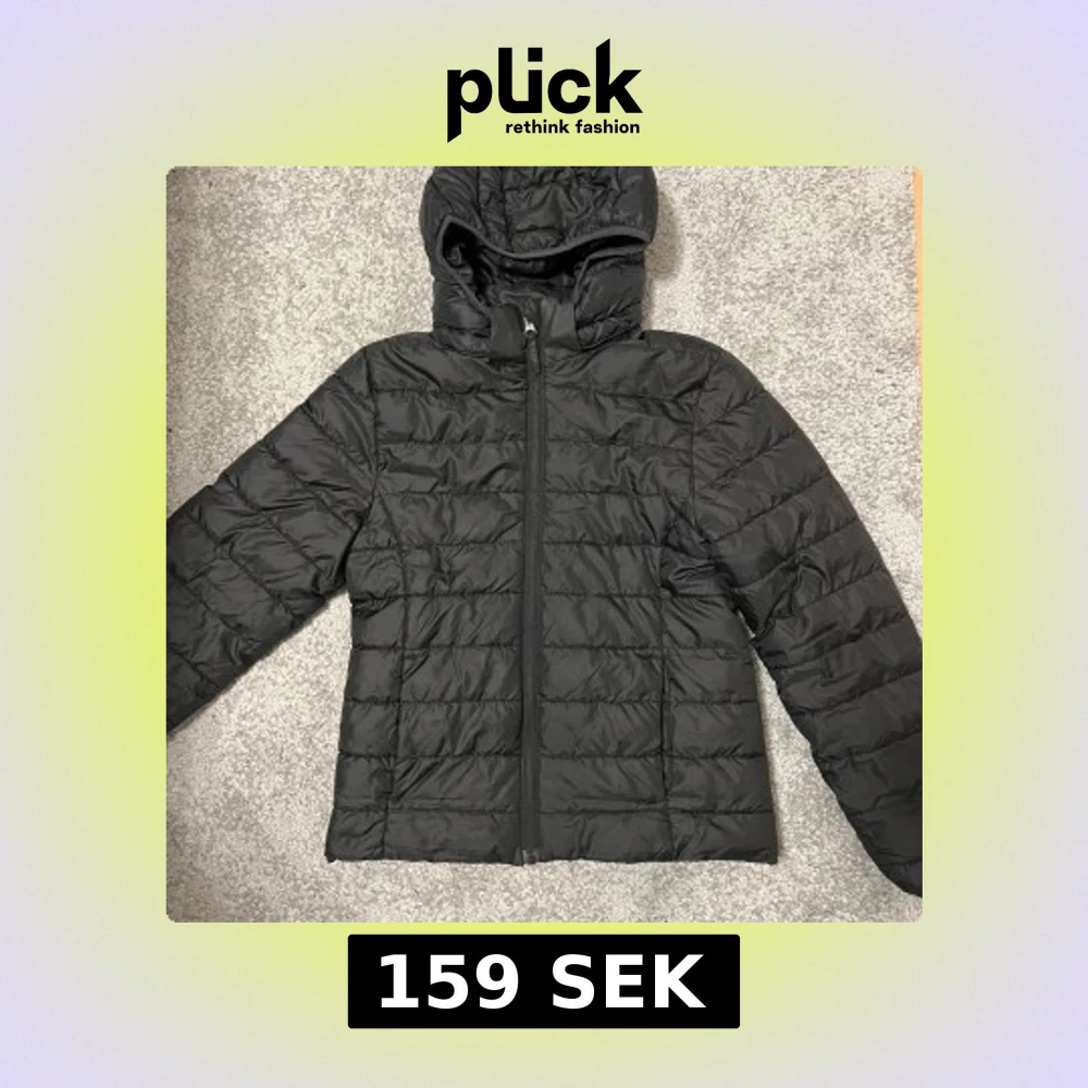 Säljer en svart pufferjacka från H&M med huva och dragkedja. Jackan är perfekt för kyligare dagar och har en stilren design. Den är lätt och bekväm att bära. (Barn jacka storlek 152)