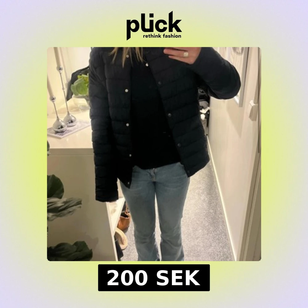 Säljer en svart pufferjacka från H&M i storlek 170. Jackan har en stilren look med rund halsringning, tryckknappar framtill och horisontella sömmar. Perfekt för kyliga dagar och enkel att matcha med olika outfits.