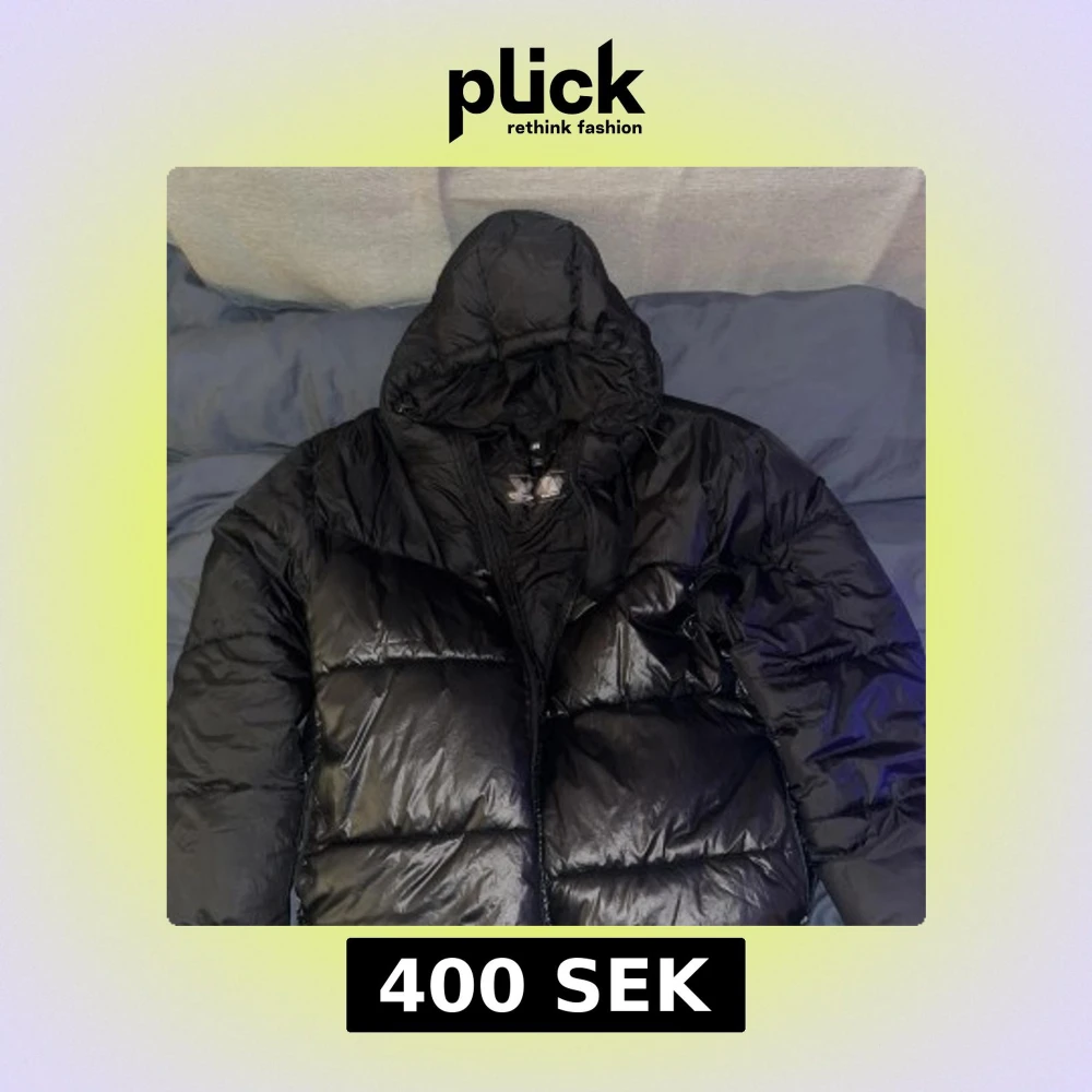 Svart pufferjacka från H&M med vattenavvisande och vindtätt material. Jackan har en stor huva, dragkedja framtill och snörning i nederkant för extra skydd mot väder. Perfekt för kalla dagar och har en clean, stilren look, extremt puffy så trots att lappen säger M skulle jag påstå att den passar L eller XL
