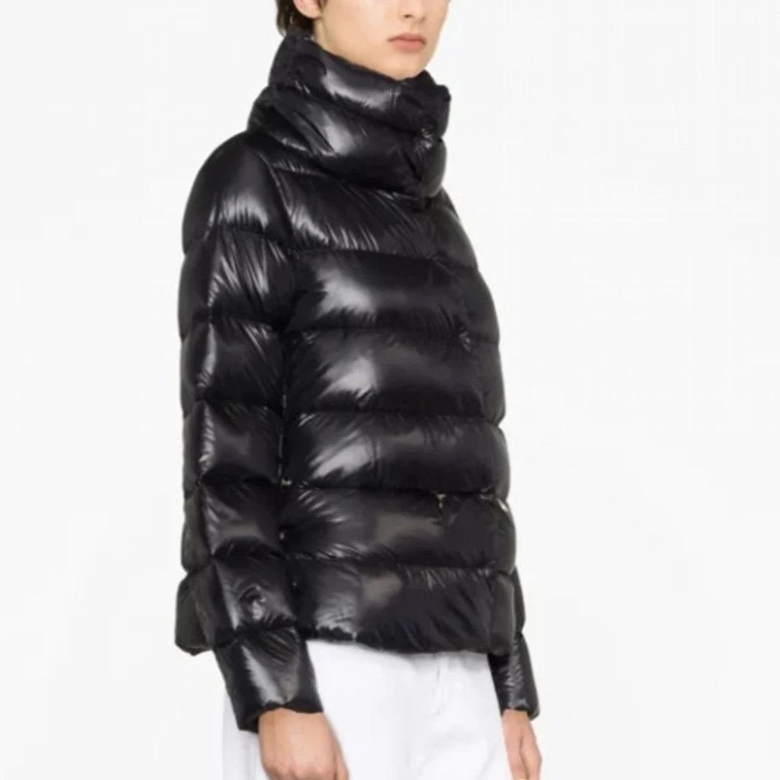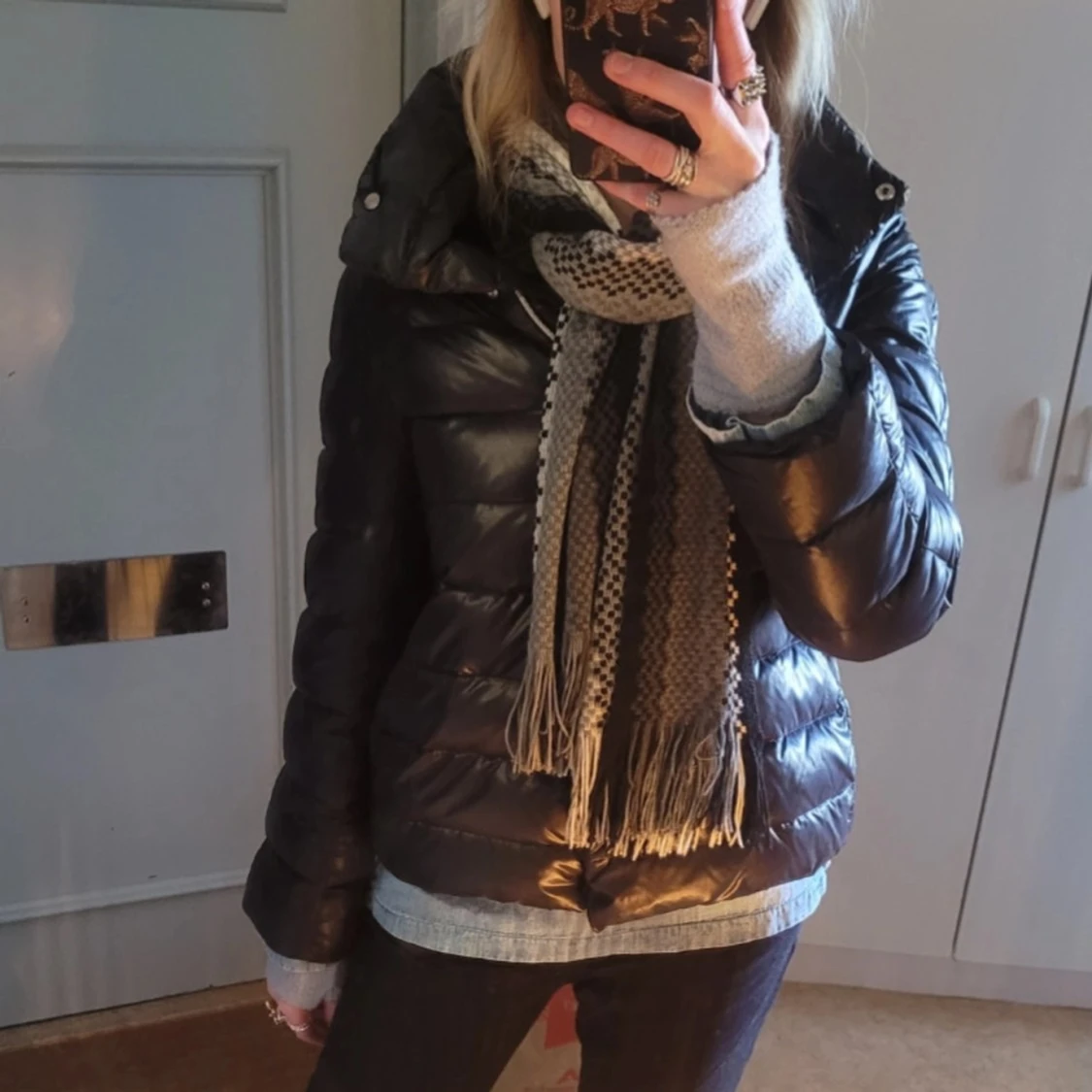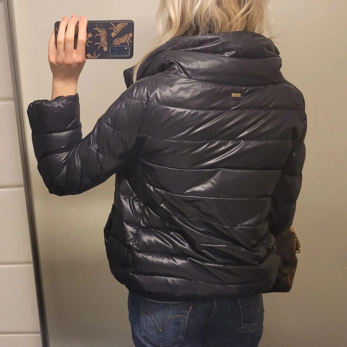 Säljer en snygg svart pufferjacka från Herno med dragkedja och knappar. Jackan har en hög krage och långa ärmar, perfekt för kyliga dagar. Den quiltade designen ger en modern look. den är i samma modell som den superpopulära modelenl utom att denna har full långa ärmar vilket gör att man kan ha den under vintern med!!! Så så fin!sista bilden visar små deffekter med det är inget som syns då det är på insidan och det påverkar inte jackan alls!🩷
