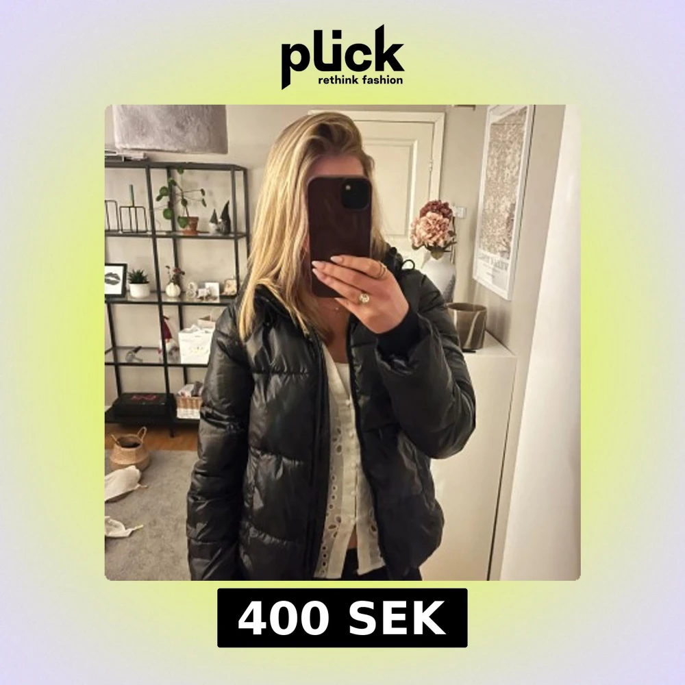 Säljer en svart pufferjacka från Hööks med glansig finish och quiltad design. Har dragkedjor på sidan till för när man rider, men inget man tänker på!