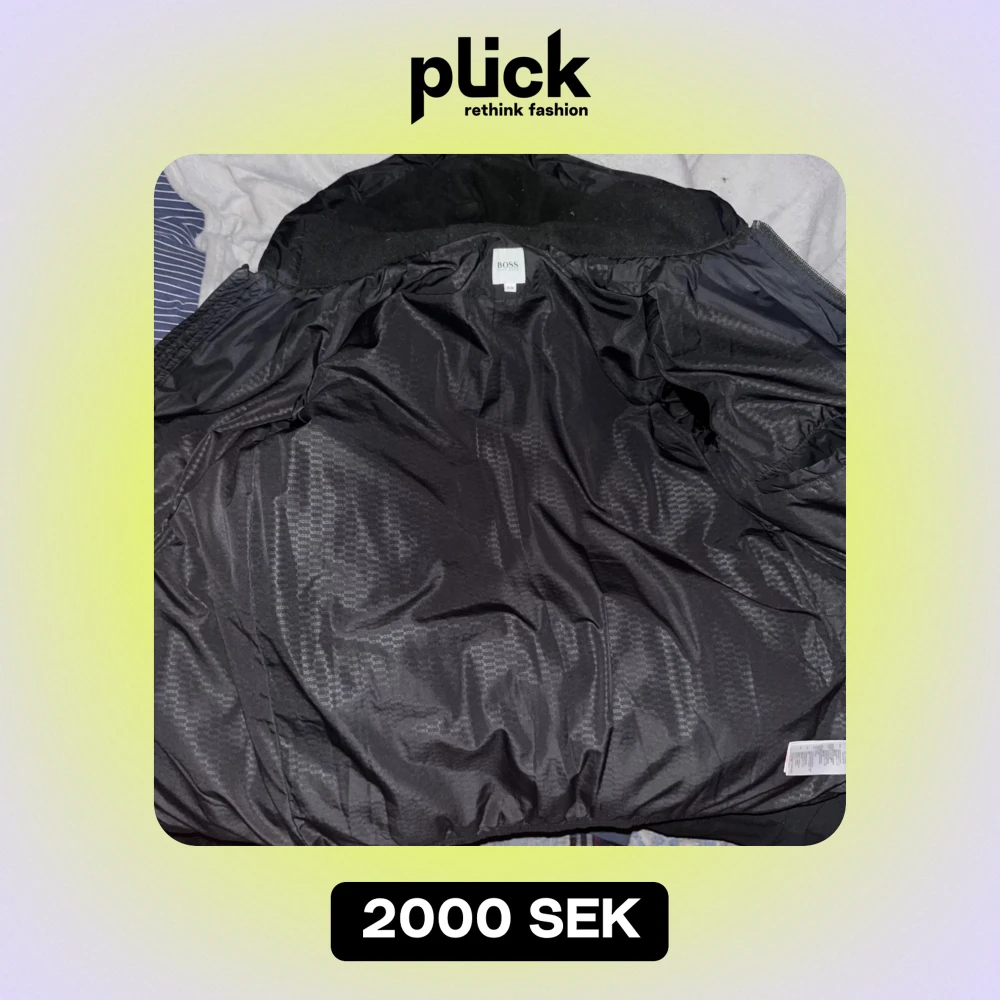 Säljer en svart pufferjacka från Hugo Boss i storlek M. Jackan är perfekt för kalla dagar med sin vadderade design och huva. Den har en stilren look med diskret logga på insidan. Passar både till vardags och lite finare tillfällen.