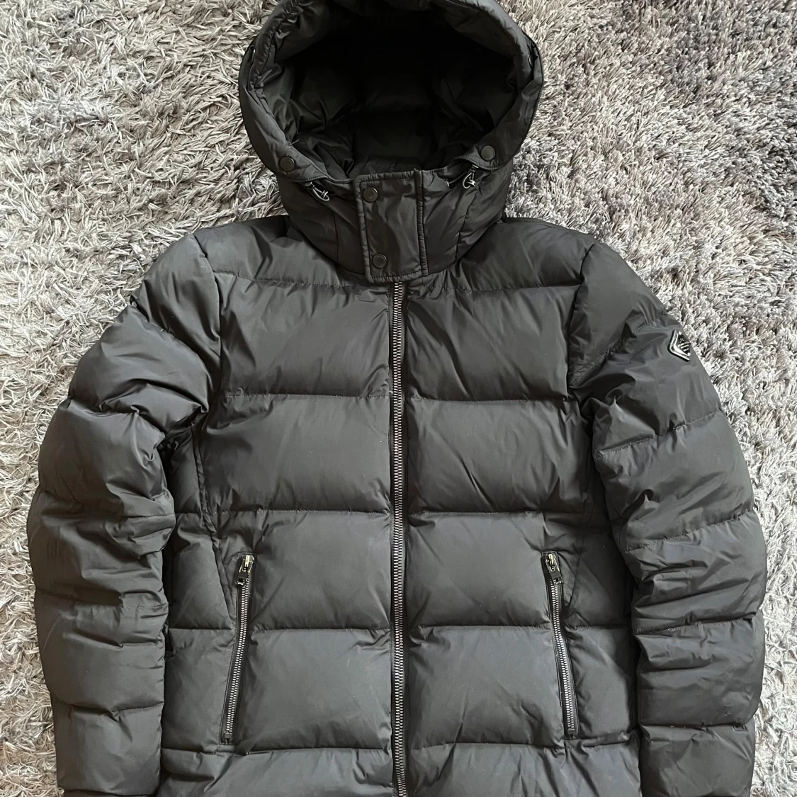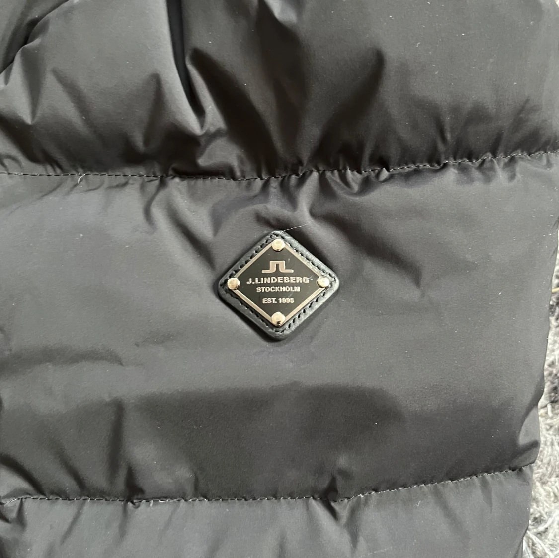 Säljer en svart pufferjacka från J.Lindeberg med huva och dragkedja framtill. Jackan har två snedställda fickor med dragkedja och en snygg logga på ärmen. Perfekt för kalla dagar och riktigt stilren i sin design.