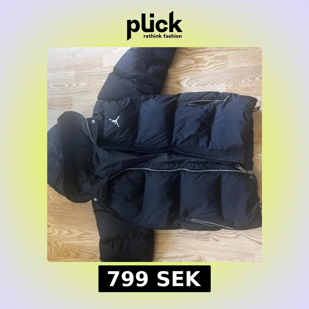 Säljer en svart pufferjacka från Jordan med huva och dragkedjor på sidorna. Jackan har det klassiska Jumpman-loggan på bröstet och är riktigt dunig och varm. Perfekt för kalla dagar och har en clean streetstyle-vibe.