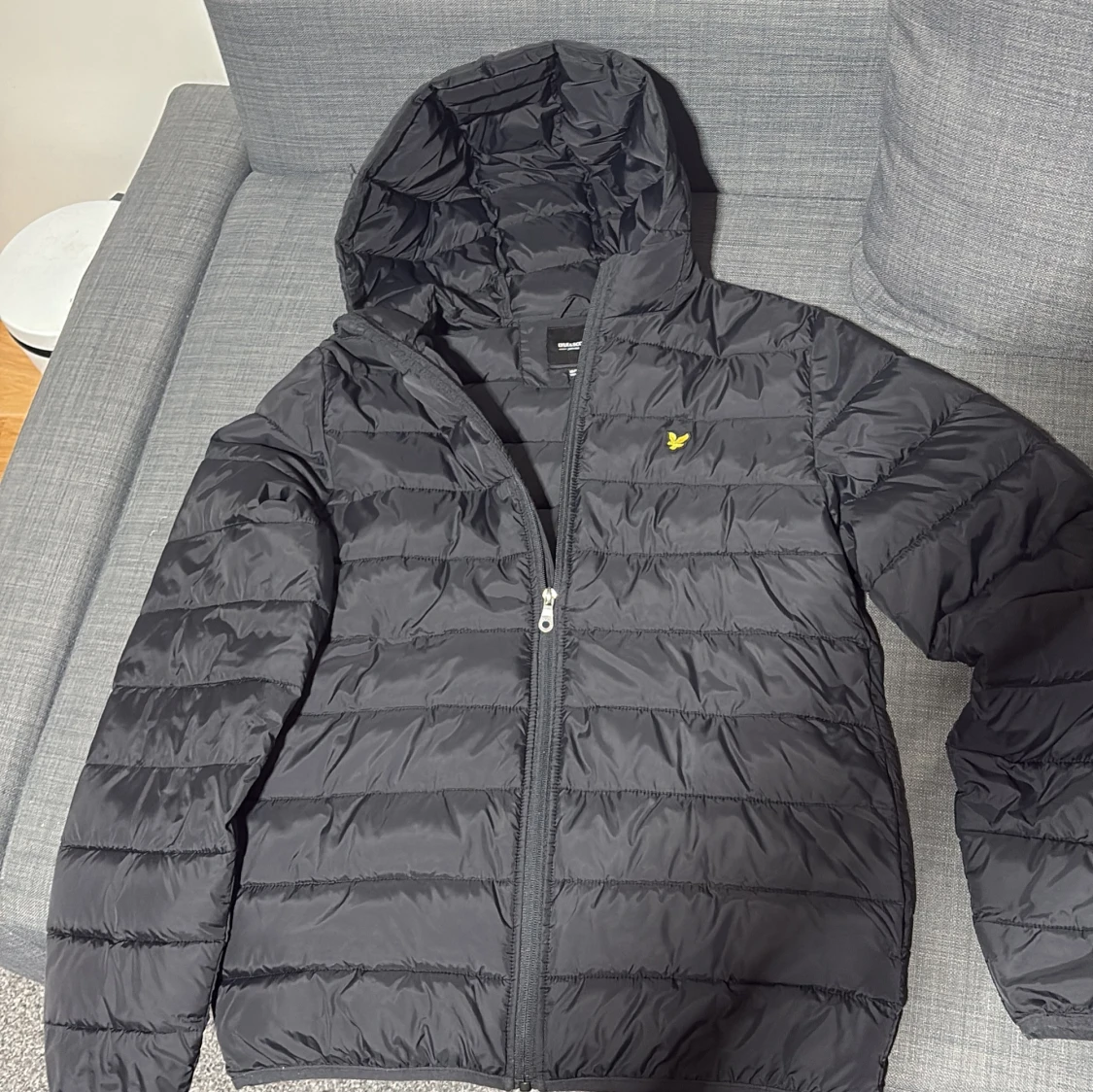 Svart pufferjacka från Lyle & Scott med huva och dragkedja. Jackan har quiltad design och en gul logga på bröstet. Perfekt för kyliga dagar och har en clean, sportig look. Passar dig som gillar stilrena och funktionella plagg.