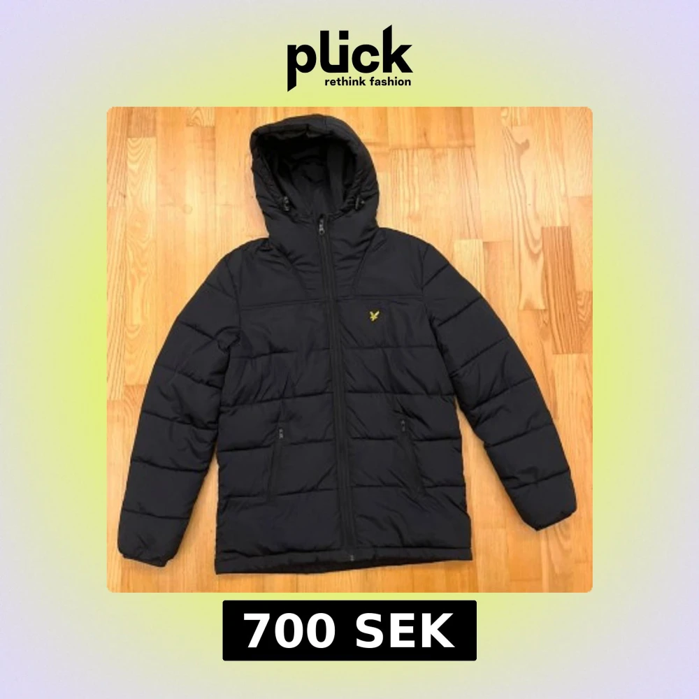 Säljer en svart pufferjacka från Lyle & Scott med gul broderad logga på bröstet. Jackan har en huva och dragkedja framtill samt två sidofickor med dragkedjor. Perfekt för kyliga dagar!