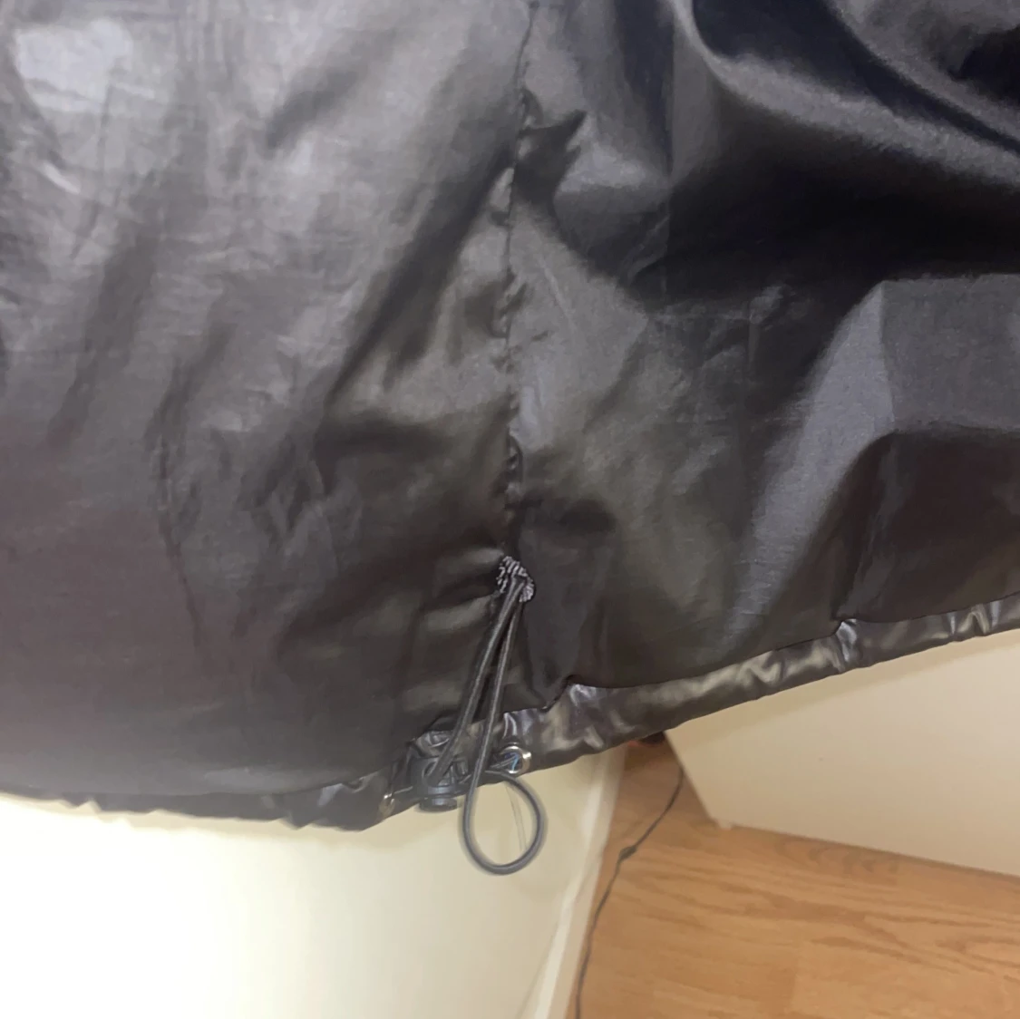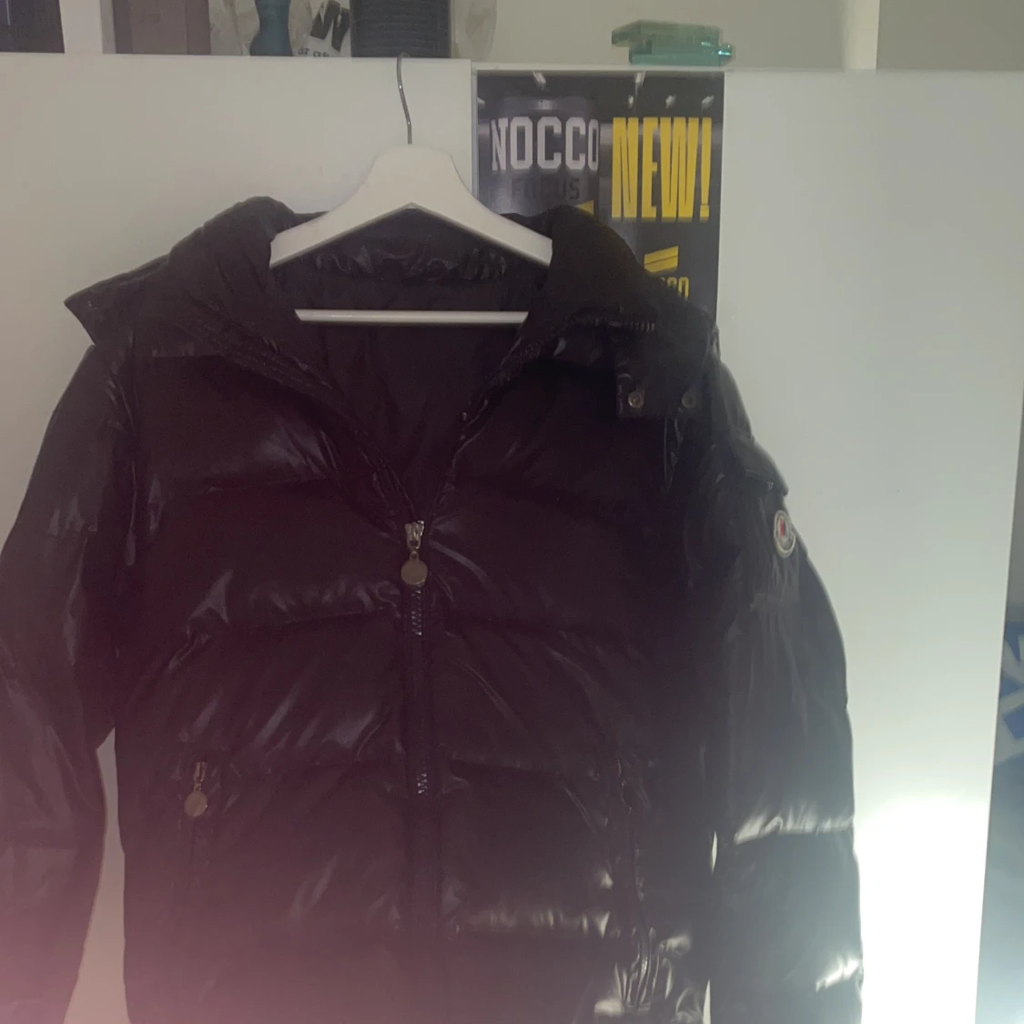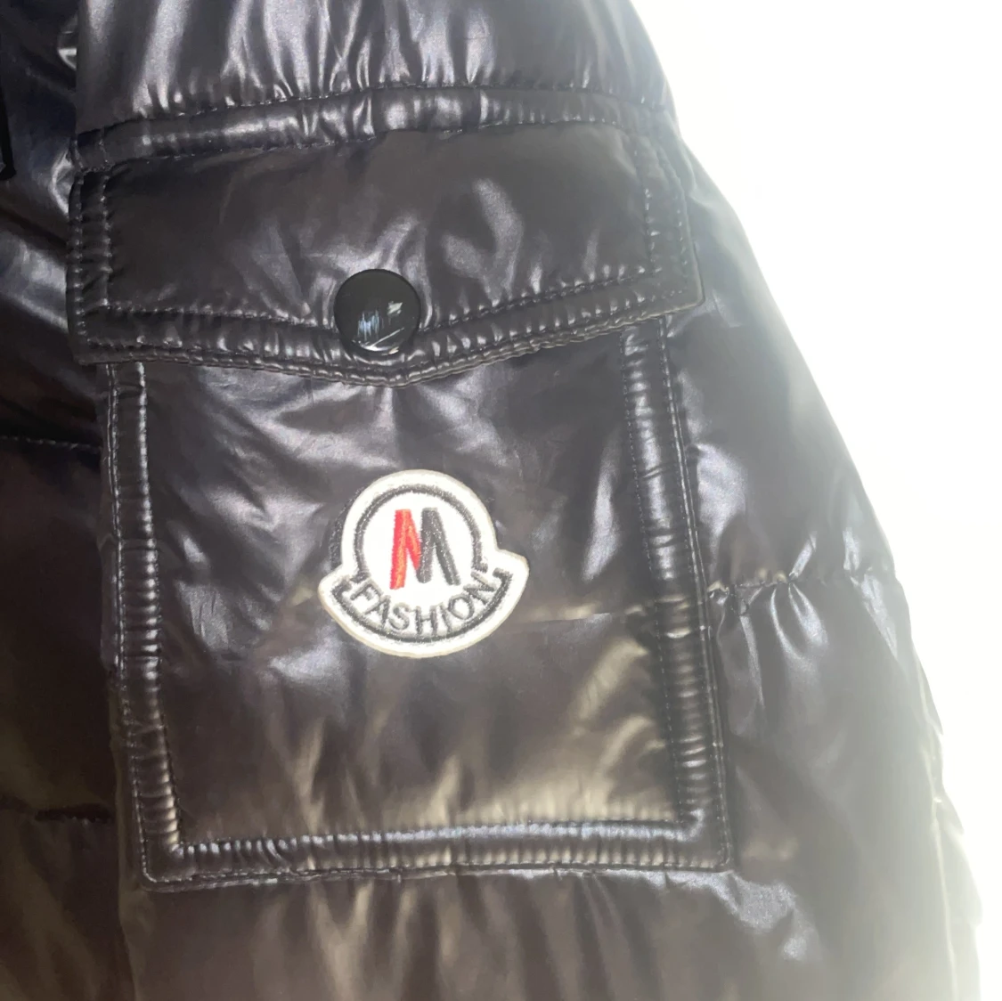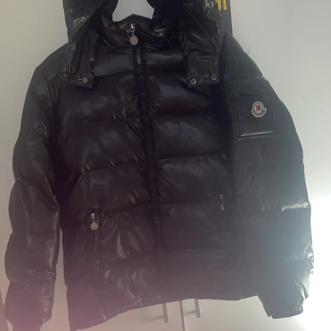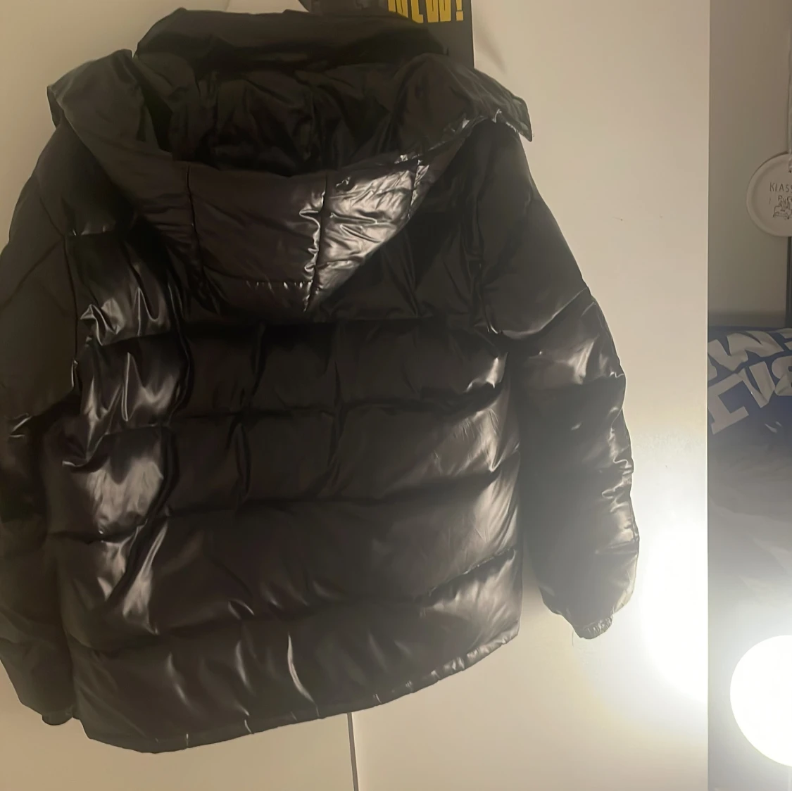 Snygg svart pufferjacka från M Fashion med glansig finish, dragkedja framtill och praktiska fickor. Jackan har huva, snörning i nederkant och en patch med logga på ärmen. Perfekt för kalla dagar när du vill hålla stilen. Vet tyvär inte storlek men den är lite för stor för mig och jag är 173