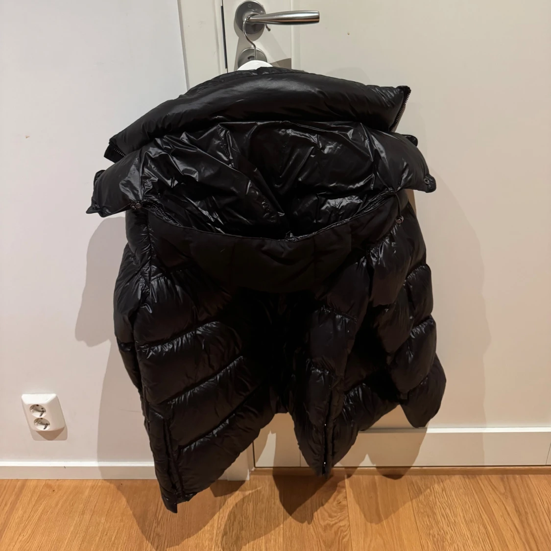 Säljer en svart pufferjacka från Massimo Dutti med hög krage och dragkedja. Jackan är vadderad och har en glansig finish som ger en cool look. Perfekt för kalla dagar när du vill hålla stilen och värmen.