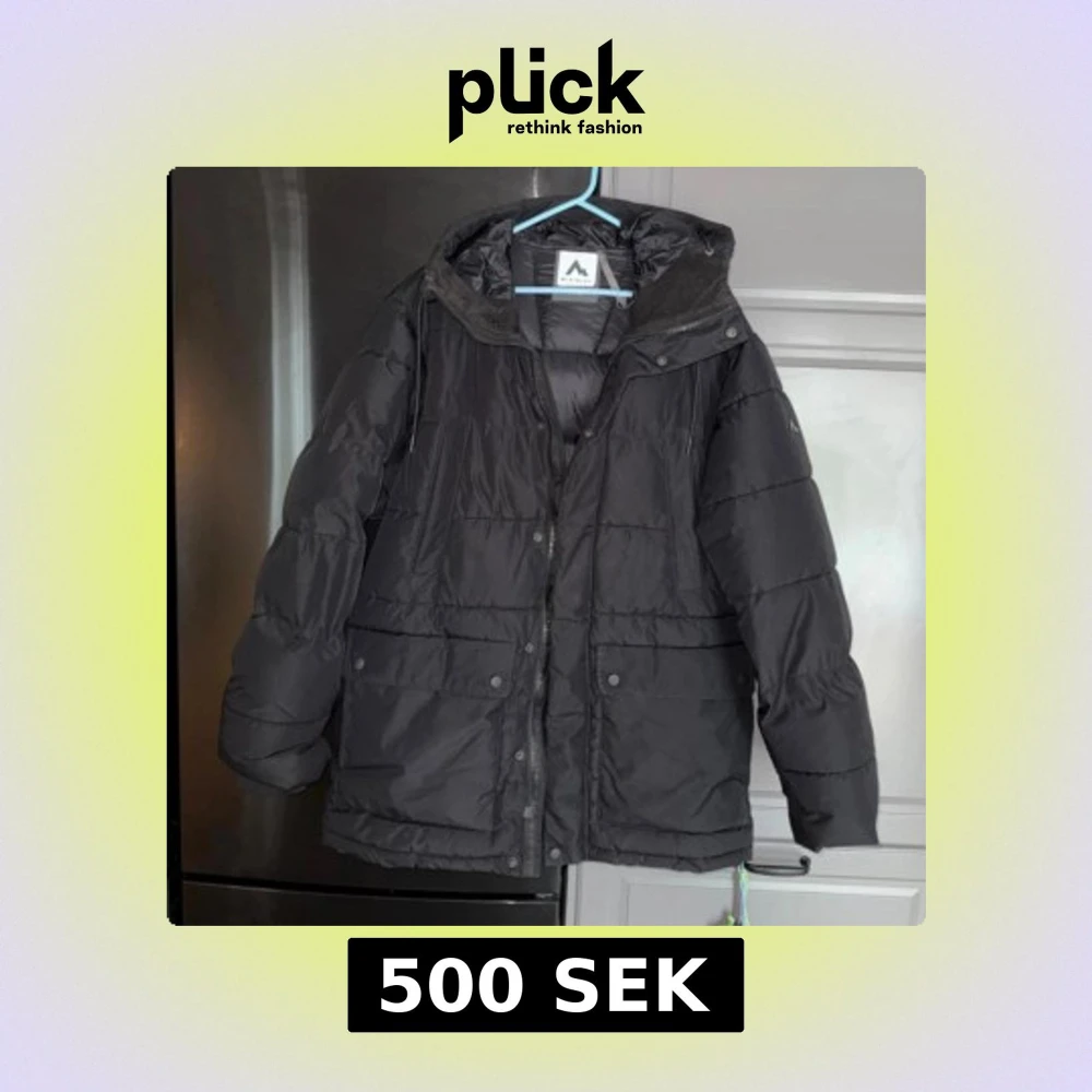 Svart pufferjacka från McKinley med huva och stora fickor framtill. Jackan har quiltad design, dragkedja och knappar längs hela framsidan. Perfekt för kalla dagar och har en klassisk, enkel look.