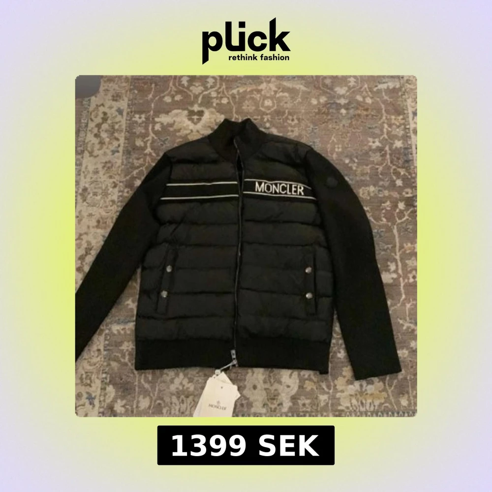 Svart pufferjacka från Moncler med vita detaljer och logga på bröstet. Jackan har quiltad front, dragkedja och två fickor med tryckknappar. Snygg och stilren design som passar perfekt till kalla dagar.