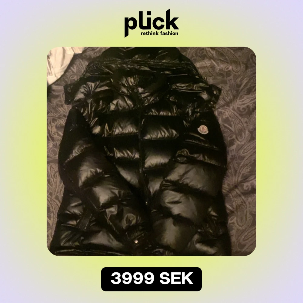 Säljer en snygg svart pufferjacka från Moncler i mycket bra skick. Jackan har en glansig finish och är perfekt för kalla dagar. Den har en dragkedja framtill och långa ärmar. Insidan har ett coolt serietidningsmönster. Perfekt för vintern! ❄️ (pris går att diskutera)
