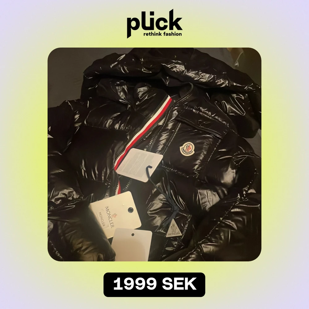 Säljer en snygg svart pufferjacka från Moncler i nytt skick. Jackan har en glansig finish och är perfekt för vintern. Den har en dragkedja med röd, vit och blå detalj samt Monclers logga på bröstet. Supervarm och stilren! Har vuxit ur den och har inte fått sålt den så därför lågt pris har kvar tagsen och allt annat.