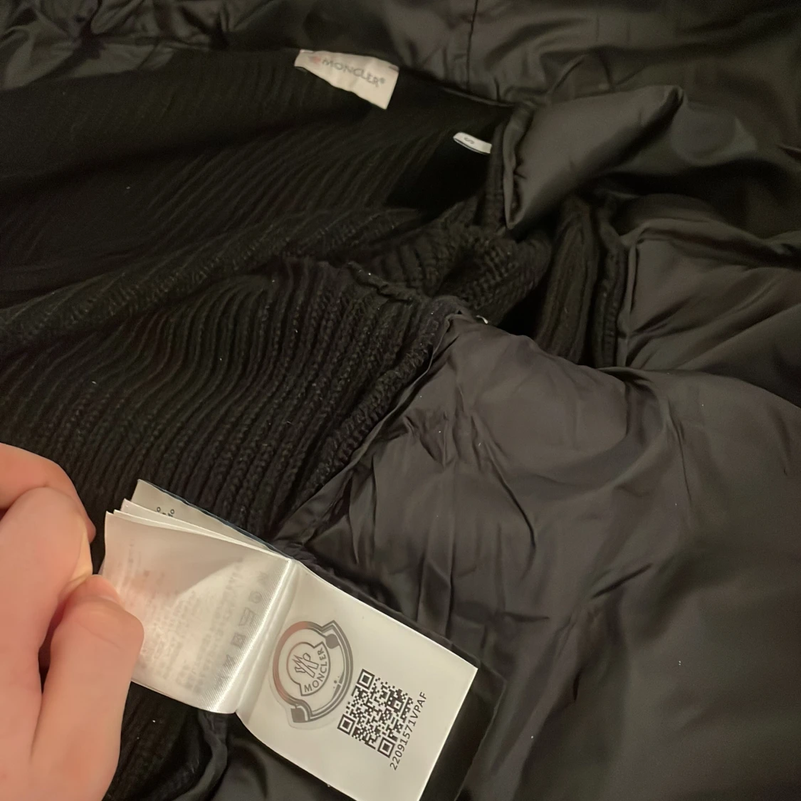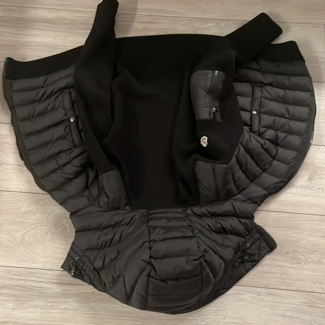 Moncler cardigan, sitter extremt smått i storlekarna. Passar dig som är 165-170 fastän den är storlek S. Priset är ej hugget i sten