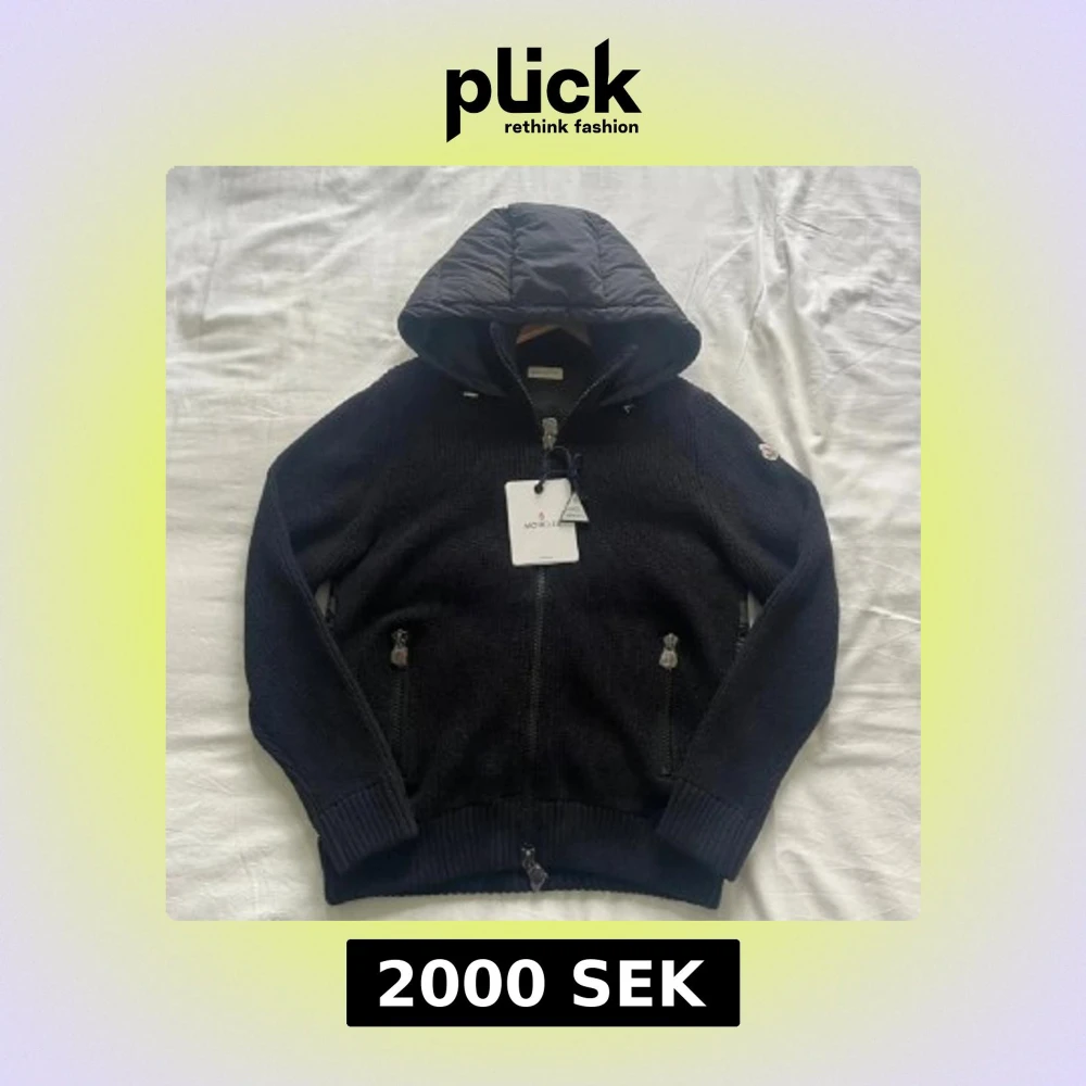Svart pufferjacka från Moncler med stickade ärmar och ribbade muddar. Jackan har quiltad huva och rygg, två dragkedjeförsedda fickor fram och Moncler-logga på ärmen. Materialmix av polyester och stickad ull ger en schysst look och grym komfort.