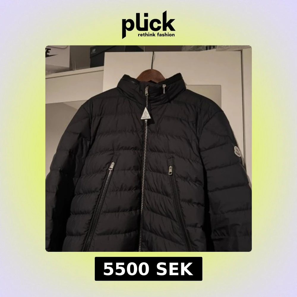 Säljer en snygg svart pufferjacka från Moncler. Jackan har en dragkedja framtill och två praktiska fickor med dragkedjor. Den är perfekt för kyligare dagar och har en stilren design med Moncler-logga på ärmen.