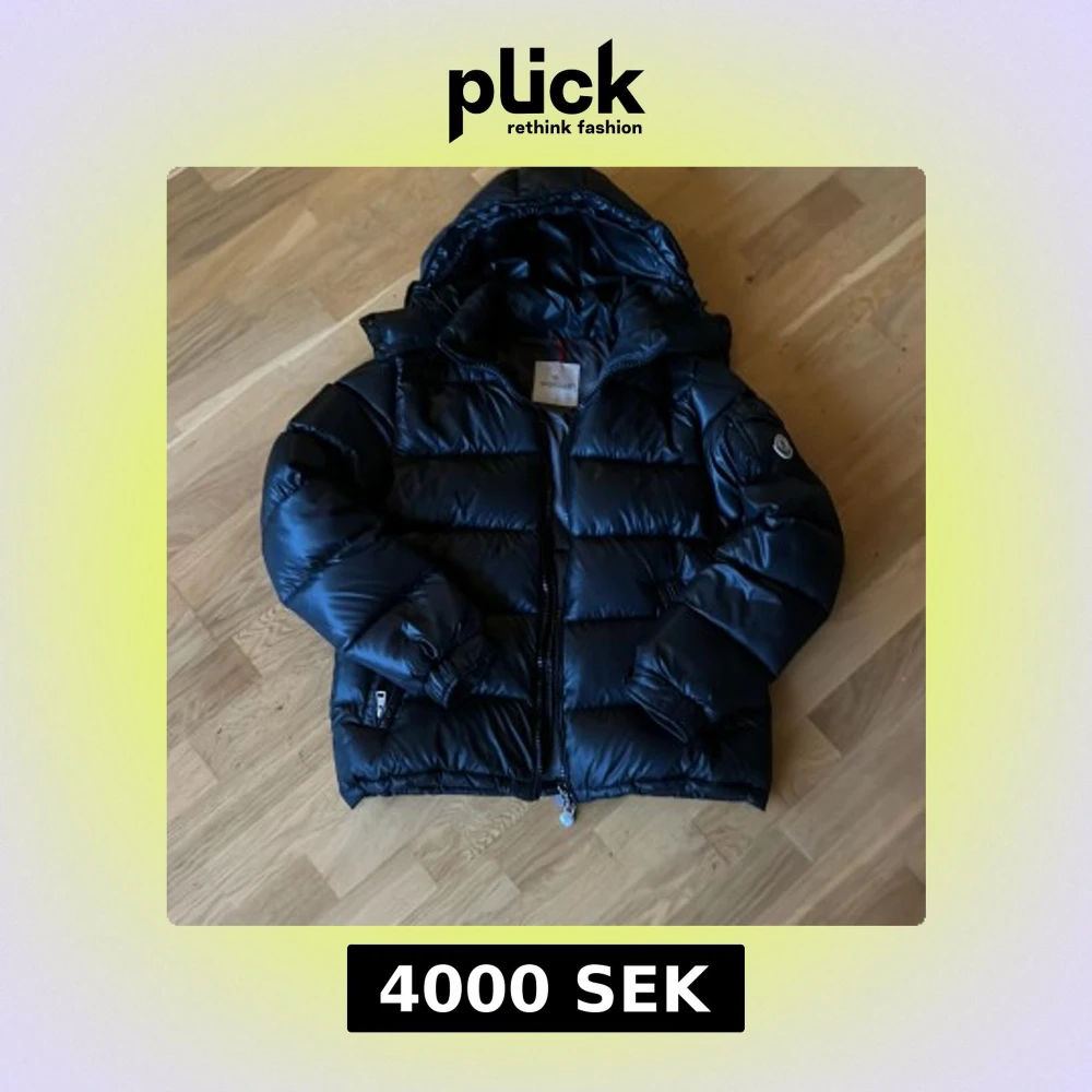 Säljer en svart pufferjacka från Moncler, modell Maya Giubbotto. Jackan har huva, dragkedja framtill och Moncler-logga på ärmen. Den är tillverkad i blankt syntetmaterial och har en quiltad design som ger en schysst volym. Perfekt för kalla dagar och riktigt snygg streetstil.