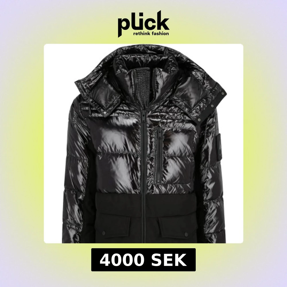 Snygg svart pufferjacka från Moose Knuckles med glansig finish upptill och matta partier nedtill. Jackan har hög krage, huva, dragkedja framtill och flera fickor med lock. Perfekt för kalla dagar och riktigt street i stilen.