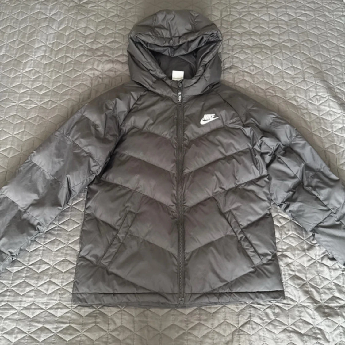 Säljer en svart pufferjacka från Nike i storlek XL i barn storlek jackan ser grå ut i bild men e svart
