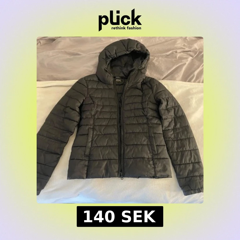 Säljer en svart pufferjacka från Only med huva och dragkedja framtill. Jackan har ett quiltat mönster och är perfekt för kyligare dagar. Långärmad och med en klassisk, enkel design som funkar till det mesta.