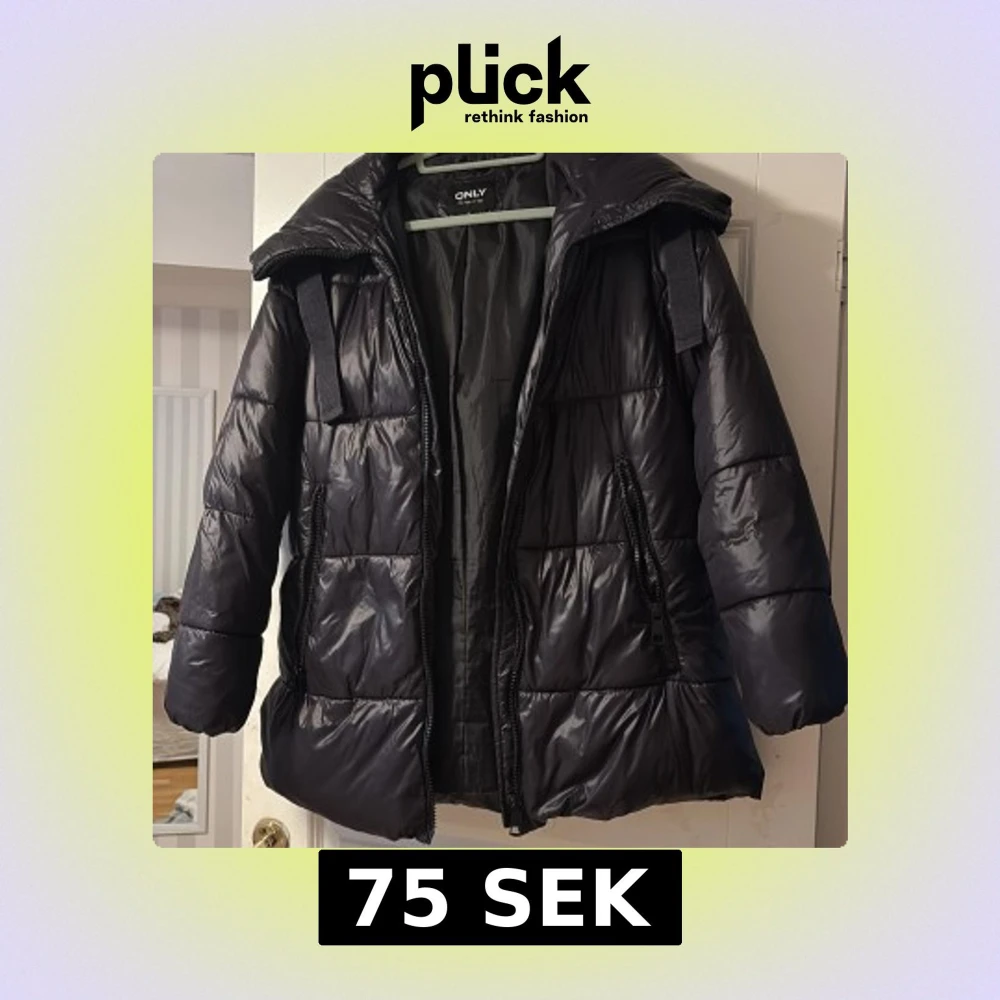 Säljer en svart pufferjacka från ONLY med huva och dragkedjor på fickorna. Jackan är quiltad och har en glansig finish, perfekt för kalla dagar. Den har lång ärm och en normal passform. Snygg och enkel att matcha med allt.