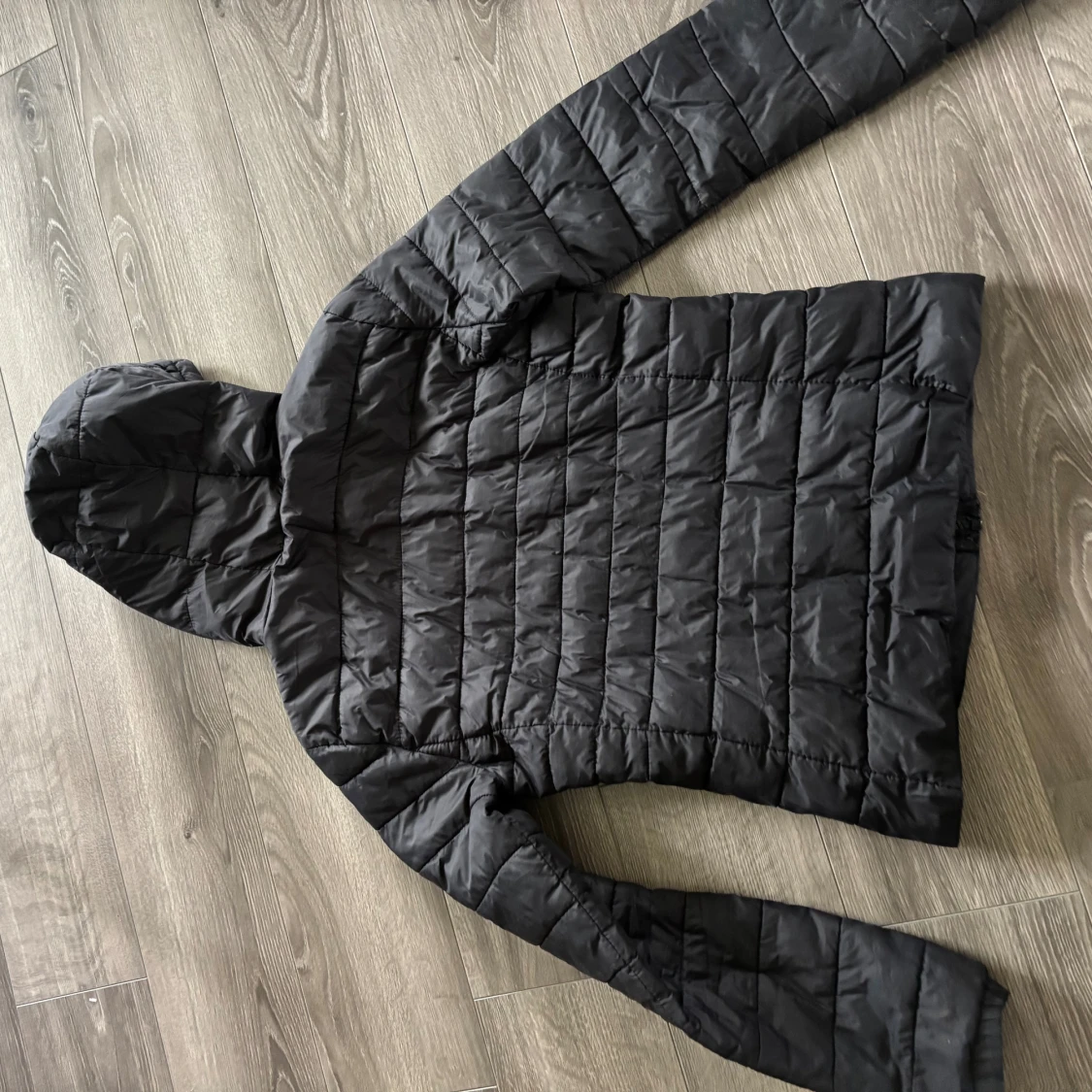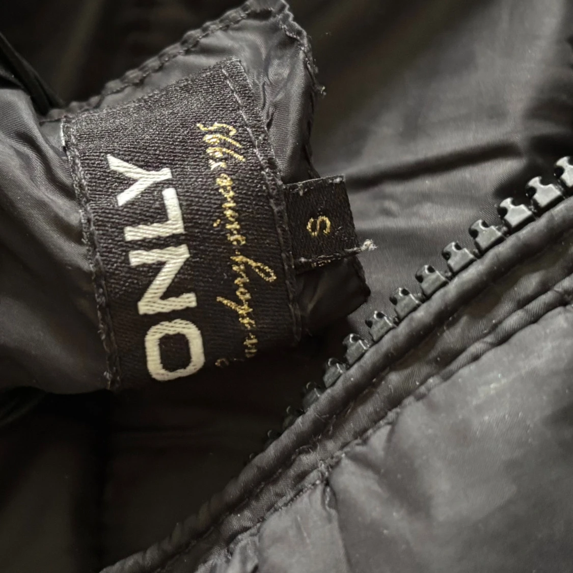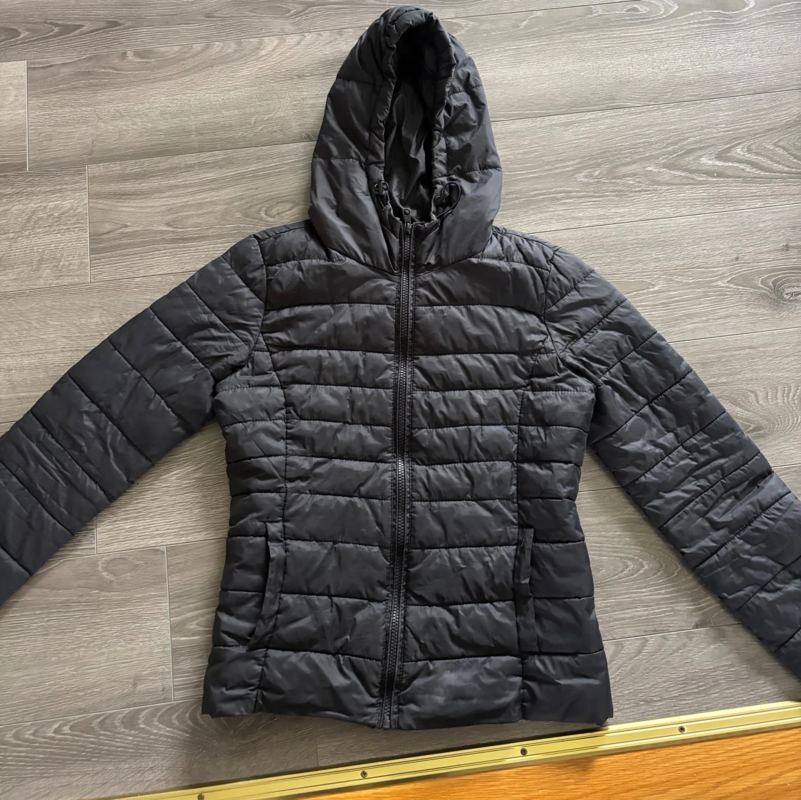 Svart pufferjacka från ONLY i storlek S. Jackan har quiltad design, huva med snörning och hel dragkedja framtill. Perfekt för kyliga dagar och har en stilren look som passar till det mesta. Materialet är syntet och jackan är långärmad. Använd väl💞