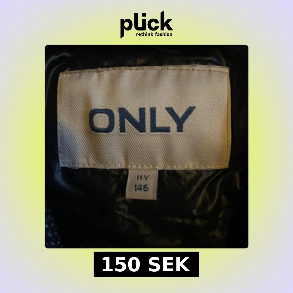 Svart pufferjacka från ONLY i storlek 146 med huva och dragkedja framtill. Jackan har quiltad design, två fickor med tryckknappar och en rund patch på ena ärmen. Perfekt för kalla dagar och riktigt snygg till vardagslooken.