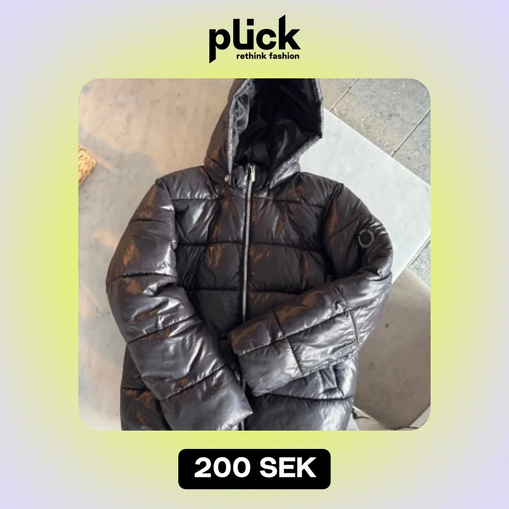 Säljer en snygg svart pufferjacka från ONLY. Den har en glansig finish och en praktisk huva. Jackan är perfekt för kyliga dagar och har en dragkedja framtill. Den är i bra skick och redo för nya äventyr!