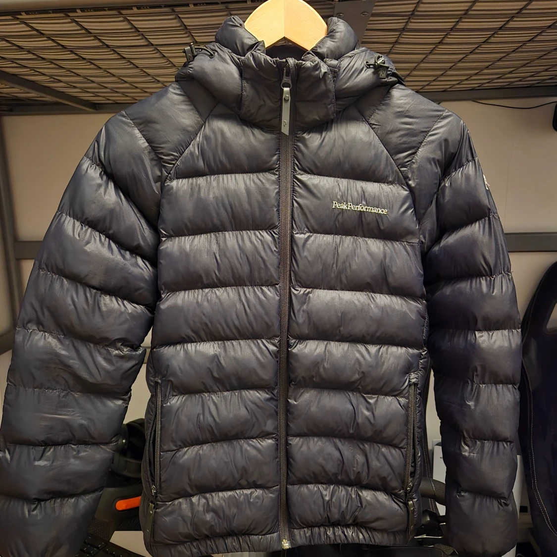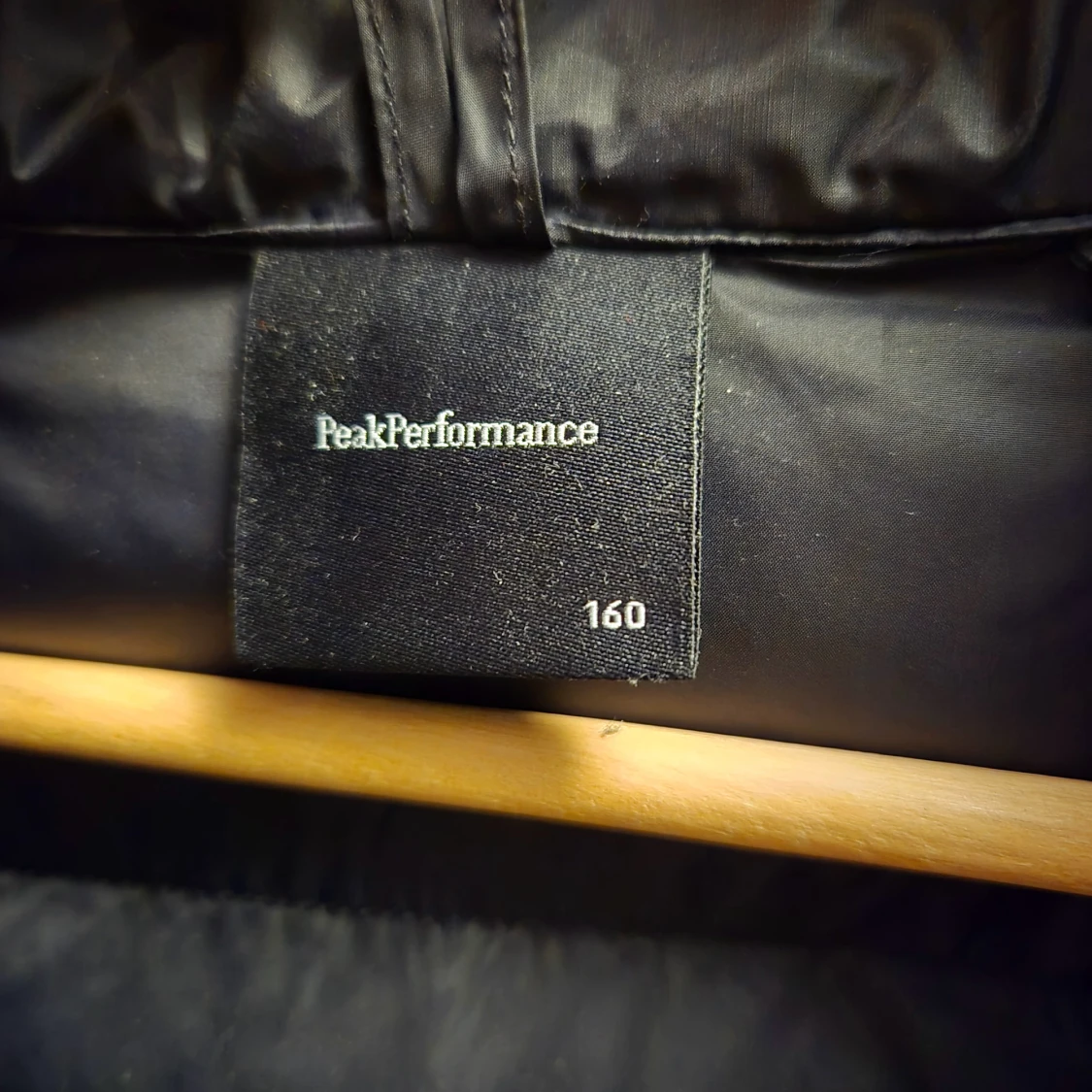 Säljer en snygg och varm svart jacka från Peak Performance. Jackan är i fint skick men finns två defekter(se bild 4-5) |storlek 160 kan även passa 165||Fint skick| skicka bud|