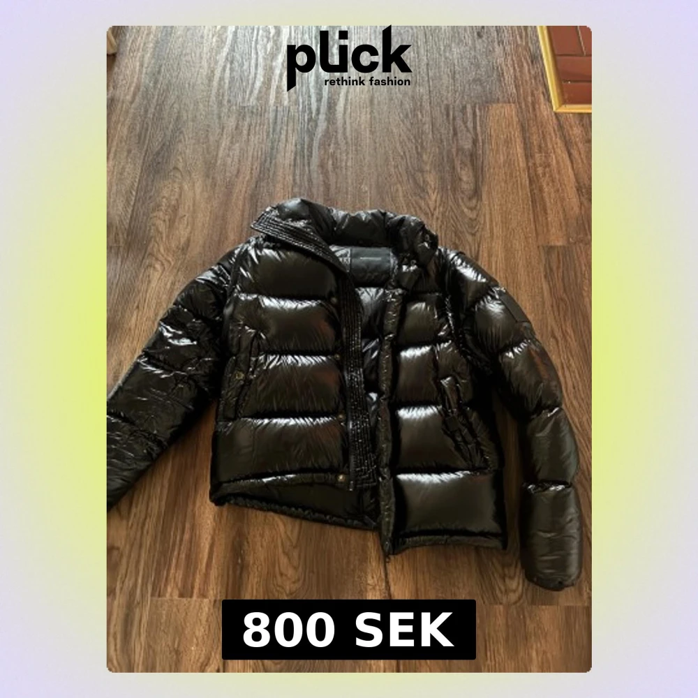 Säljer en svart, glansig pufferjacka från Peak Performance. Jackan har hög krage, dragkedja och tryckknappar framtill samt två fickor med knappstängning. Perfekt för kalla dagar och riktigt snygg till streetwear-stilen.