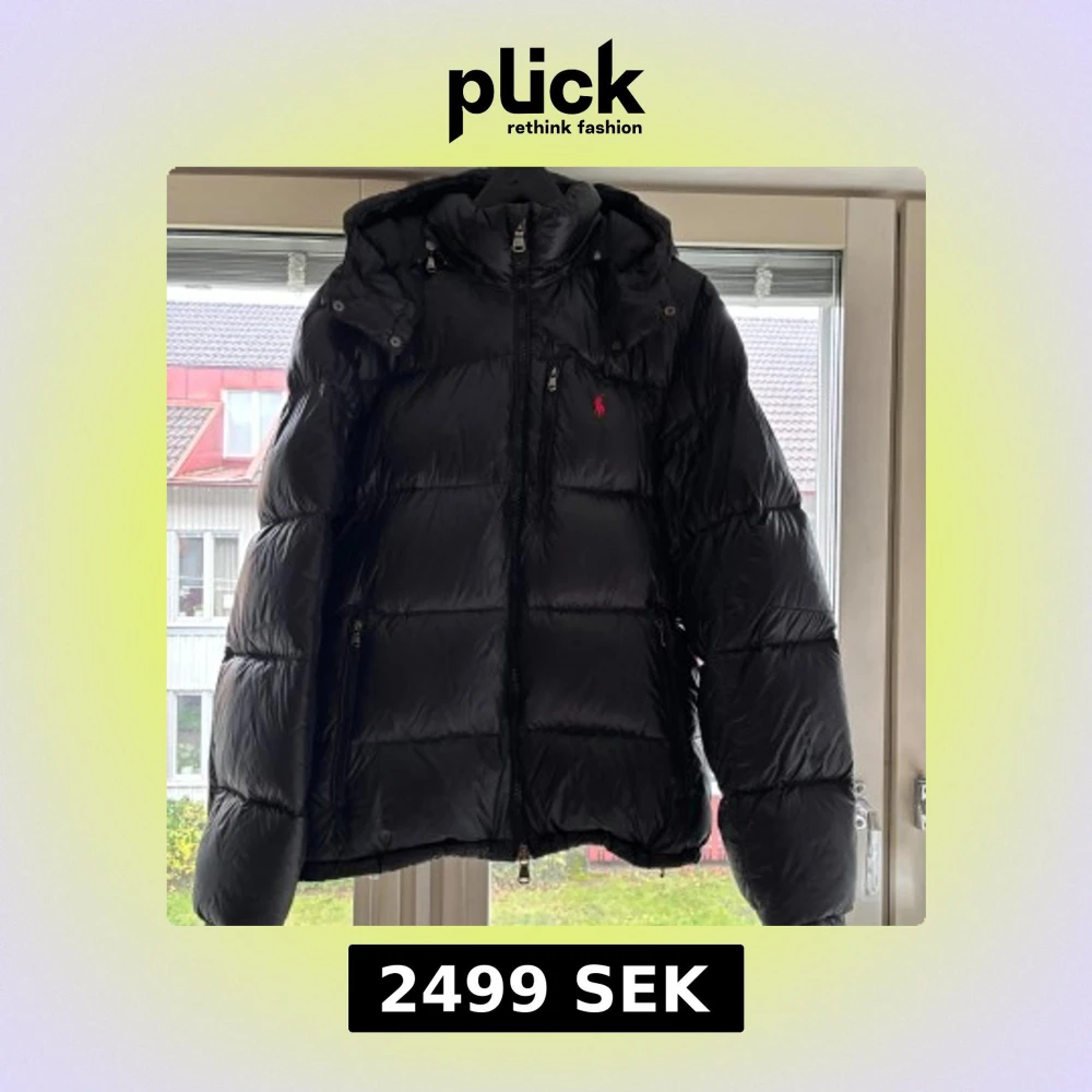 Svart pufferjacka från Polo Ralph Lauren med huva och dragkedja framtill. Jackan har ett quiltat mönster och Polo-loggan i rött på bröstet. Äkta! Om du har frågor/funderingar är det bara att skicka ett meddelande.