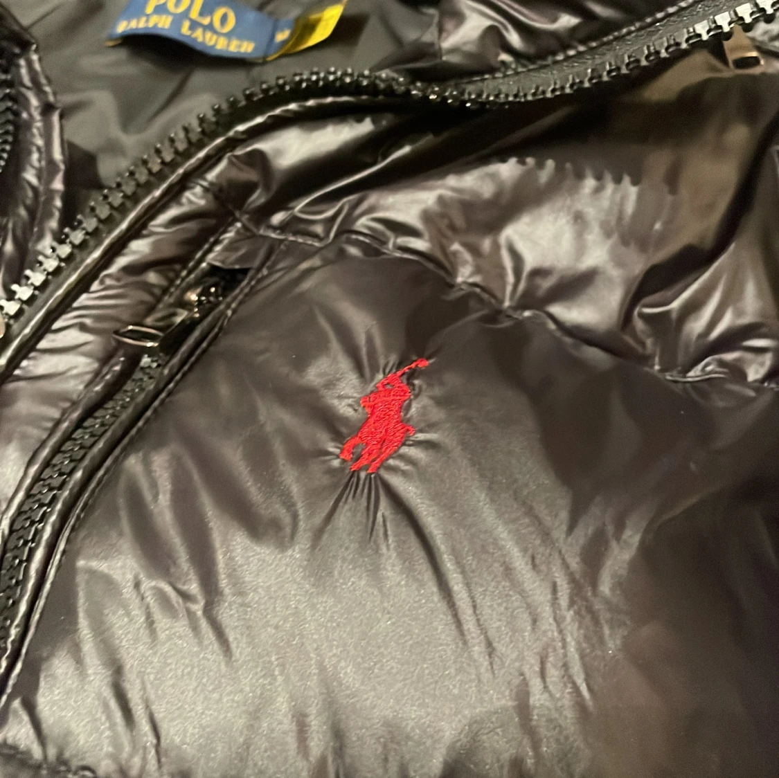 Säljer en svart pufferjacka från Polo Ralph Lauren med luva och dragkedja. Jackan har en röd broderad logga på bröstet och justerbara ärmslut med kardborre. Perfekt för alla kalla dagar på vintern. Riktigt snygg jacka!🍾