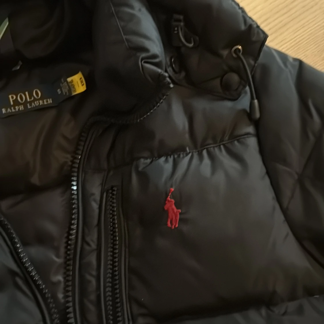 Svart pufferjacka från Polo Ralph Lauren med huva och dragkedja framtill. Jackan har två fickor med dragkedja och klassisk röd logga på bröstet. Perfekt för kalla dagar och riktigt snygg streetstil.