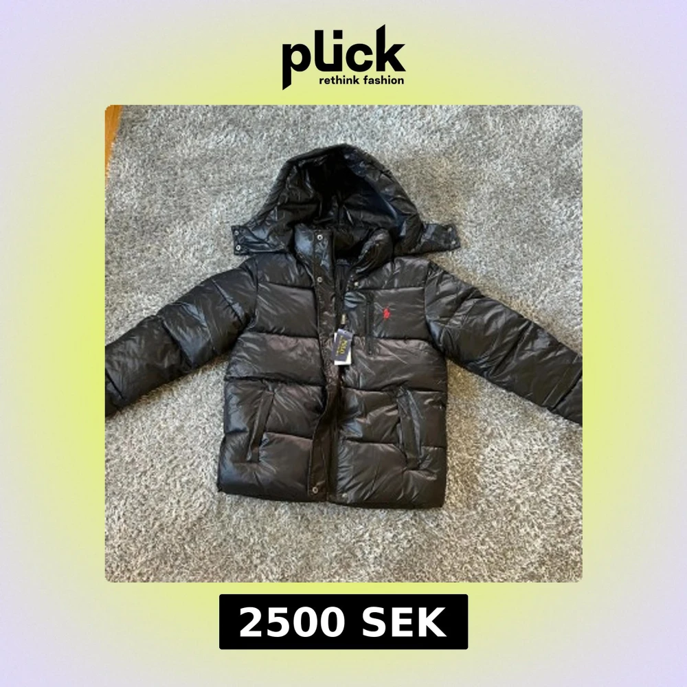 Svart pufferjacka från Polo Ralph Lauren med huva, dragkedja och knappstängning. Jackan har en röd broderad logga på bröstet, flera fickor och en glansig finish. Perfekt för kalla dagar och har en riktigt clean look. Pris kan diskuteras
