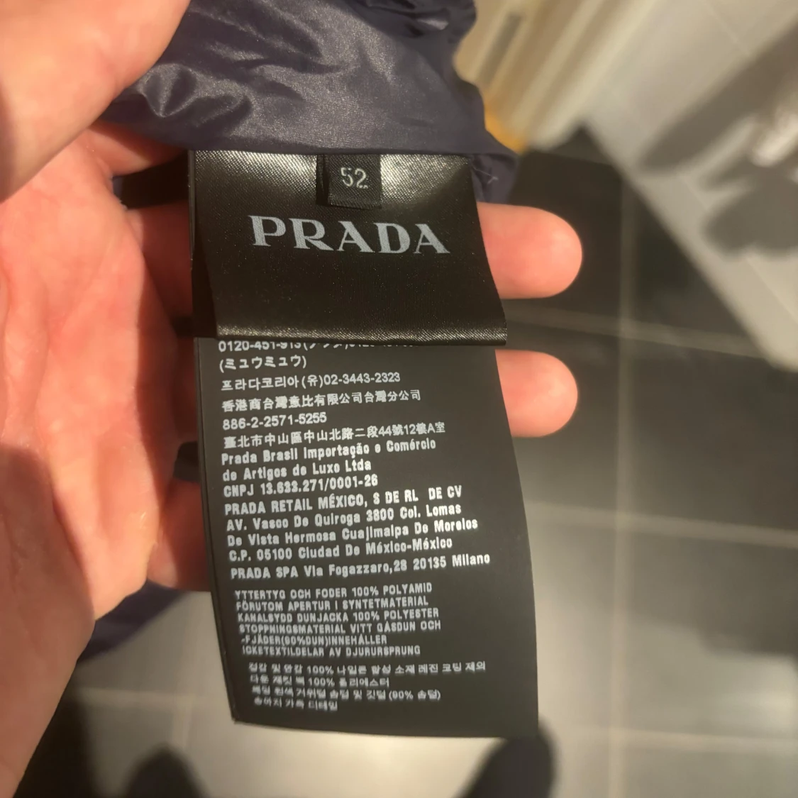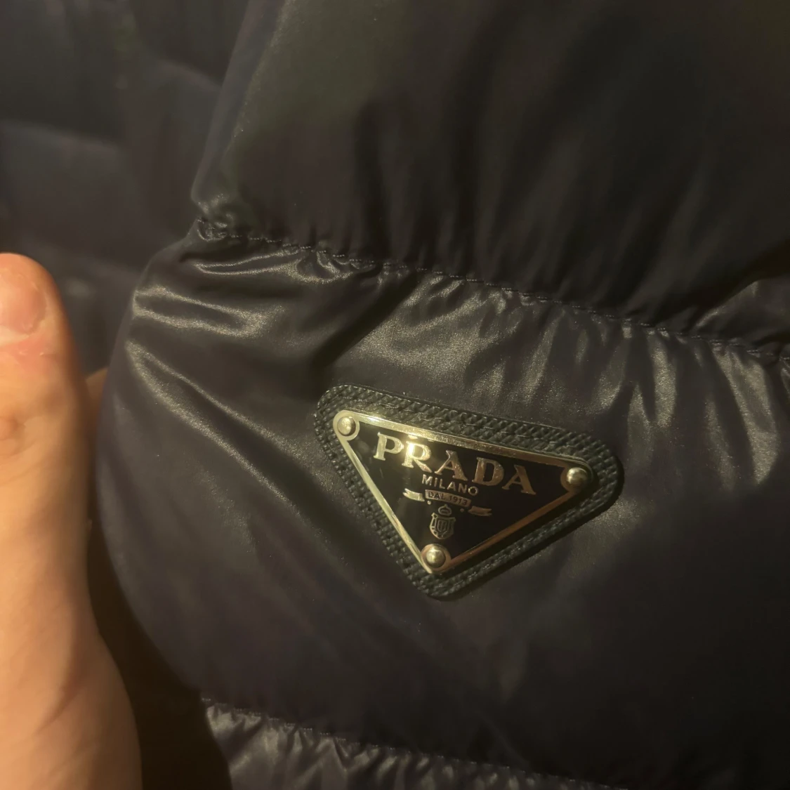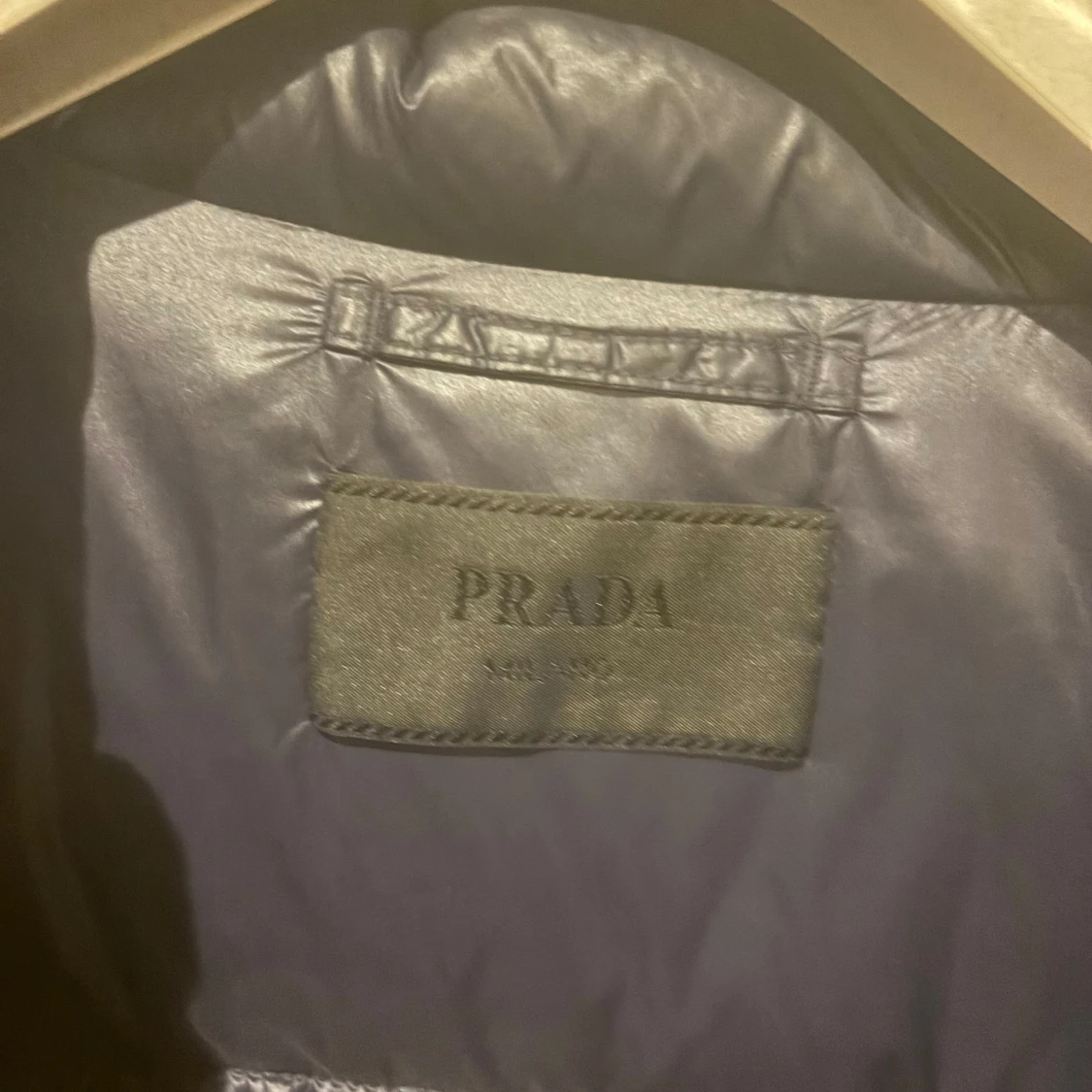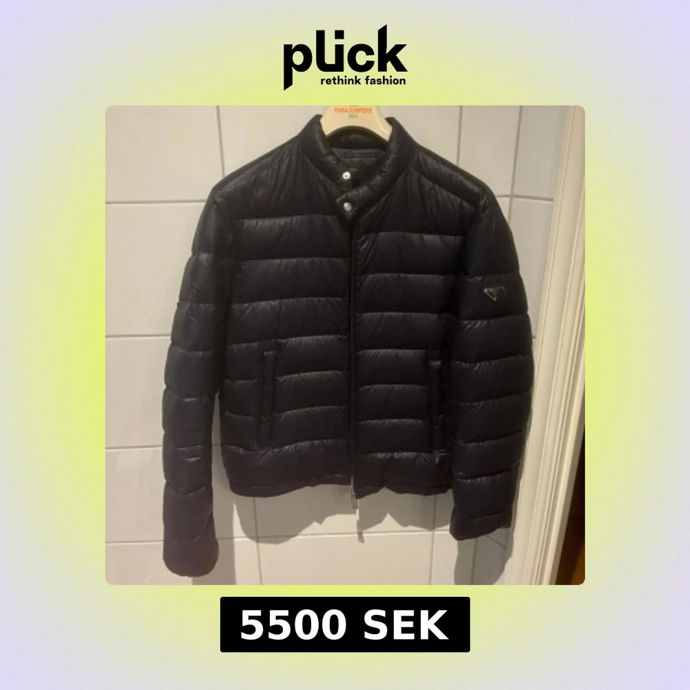 Säljer min Prada Dunjacka. Storlek 52 vilket motsvarar XL. Passar folk som bär L-XL. Marinblå färg. Använd 3-4 gånger och är som i nyskick. Nypris 10000kr
