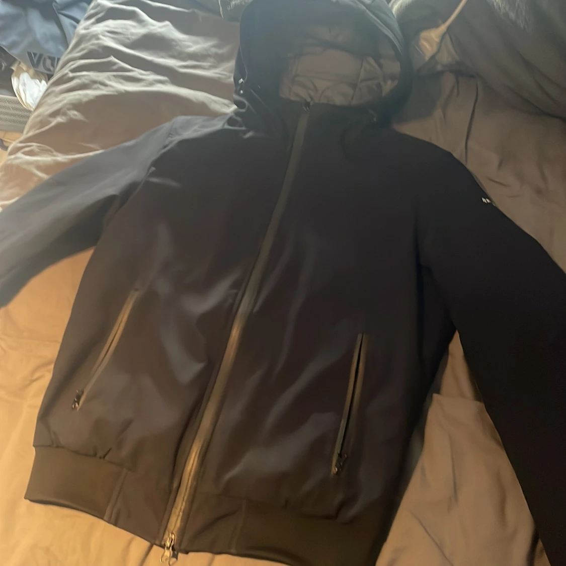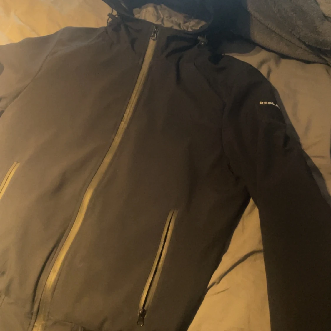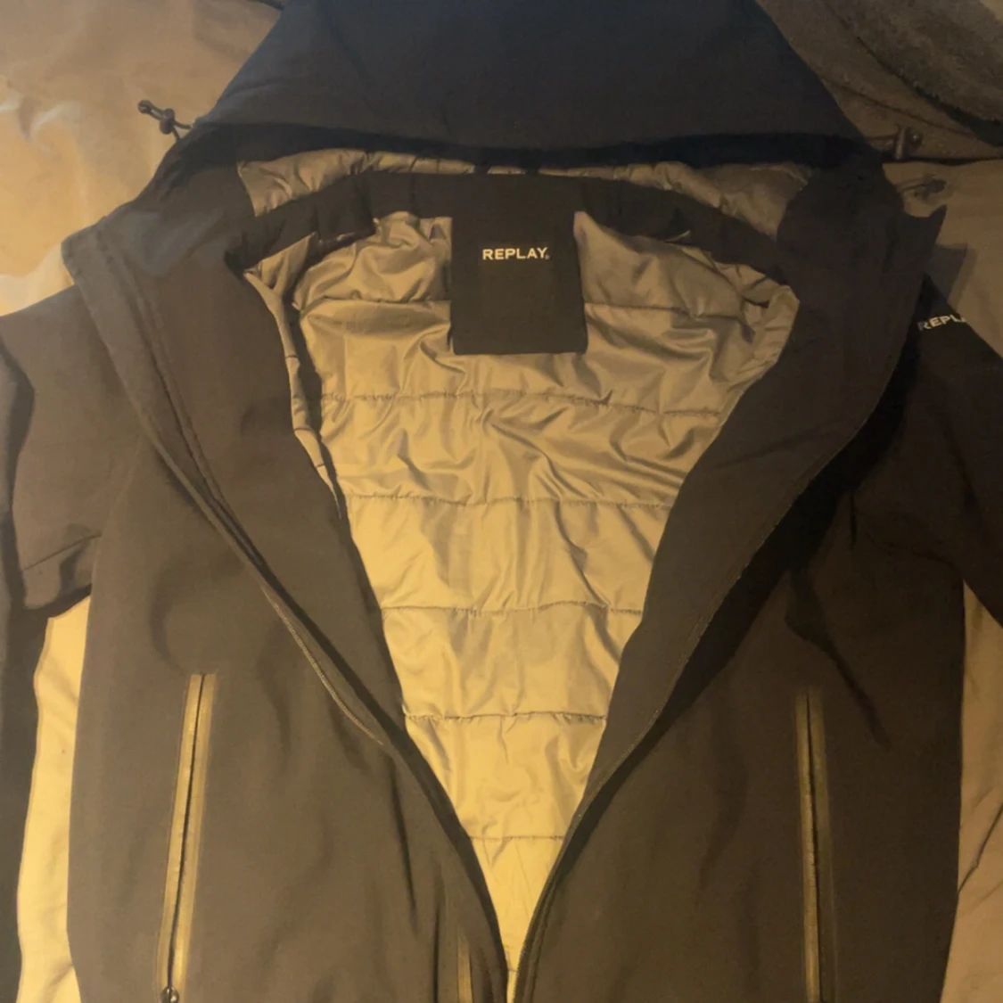 Snygg svart pufferjacka från Replay med huva och dragkedja framtill. Jackan har två praktiska fickor med dragkedja och quiltad insida i ljusgrått. Perfekt för kyliga dagar och har en stilren look som passar till det mesta.