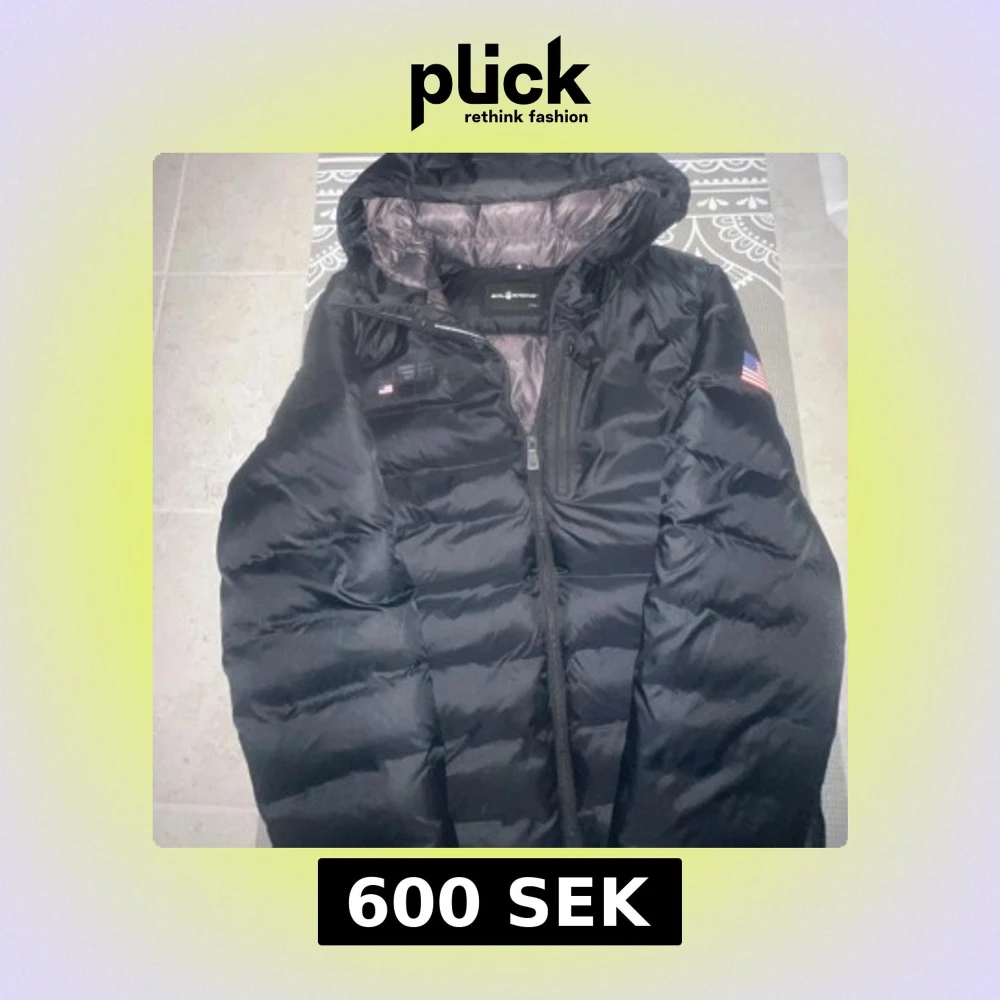 Svart pufferjacka från Sail Racing i storlek medium. Jackan har huva, amerikansk flaggpatch på ärmen och flera praktiska fickor med dragkedja. Materialet är glansigt och quiltat, perfekt för kalla dagar. Snygg och sportig look med Sail Racing-logga på bröstet. Aldrig använt