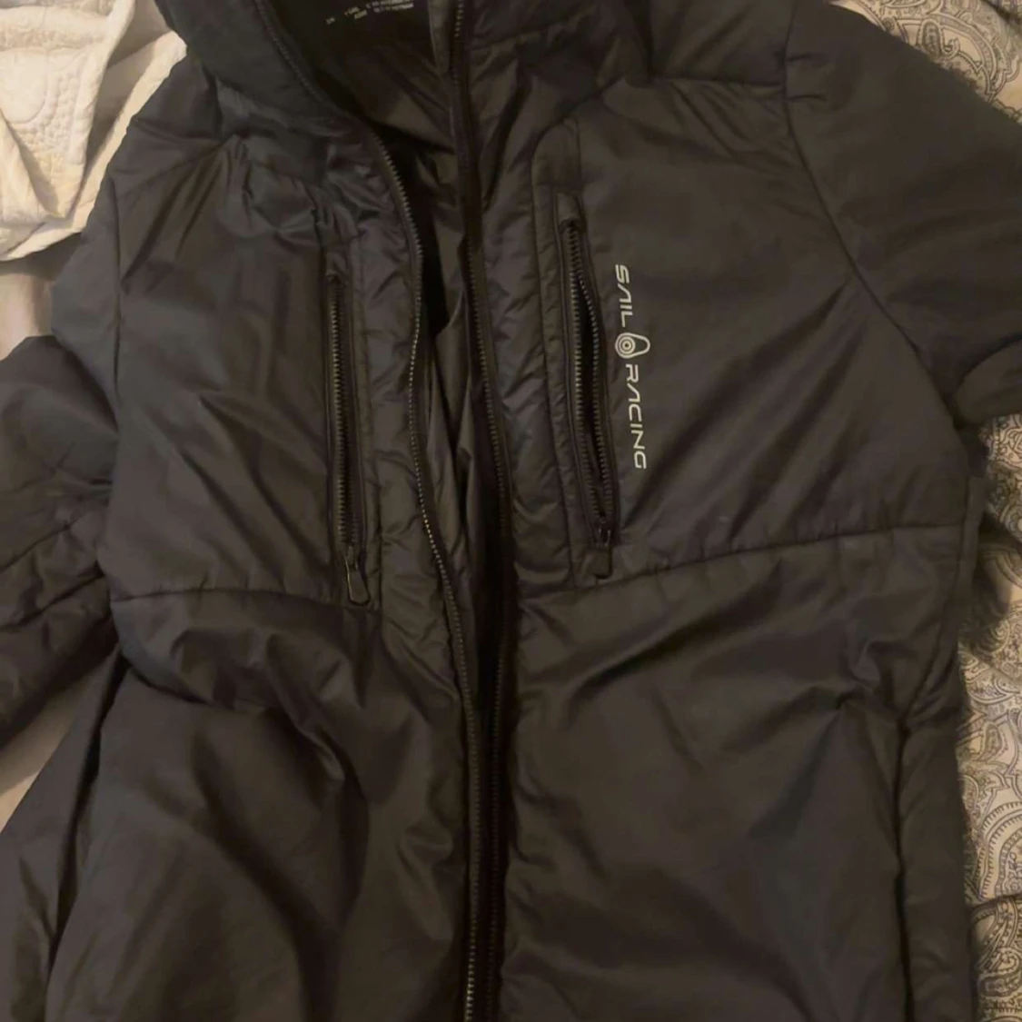 Säljer en svart pufferjacka från Sail Racing i bra skick. Jackan har en dragkedja framtill och två praktiska bröstfickor med dragkedjor. Perfekt för kyliga dagar och har en stilren design som passar till det mesta. Hör av dig vid intresse!