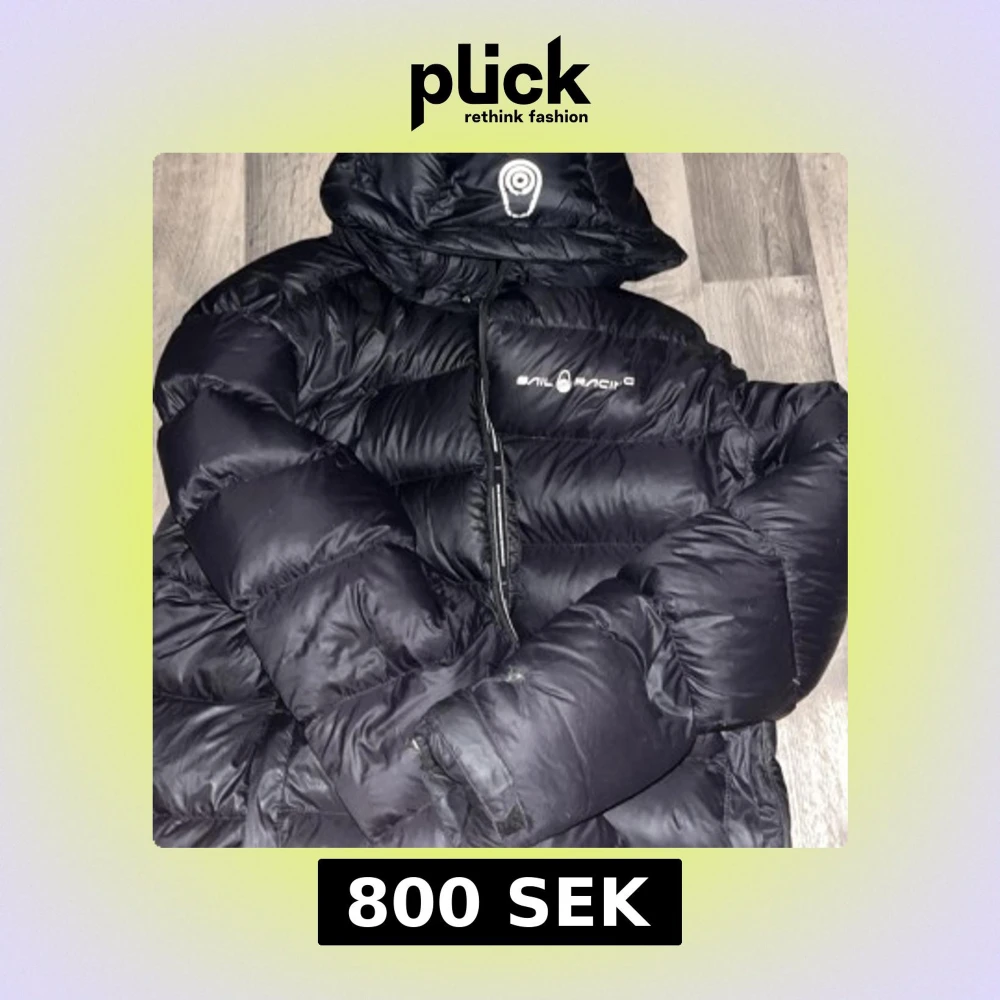 Säljer en svart pufferjacka från Sail Racing i storlek XL. Jackan har huva med logga, tydlig Sail Racing-tryck på bröstet och grova, quiltade sektioner. Materialet är syntet och jackan har dragkedja framtill. Perfekt för kalla dagar och riktigt snygg