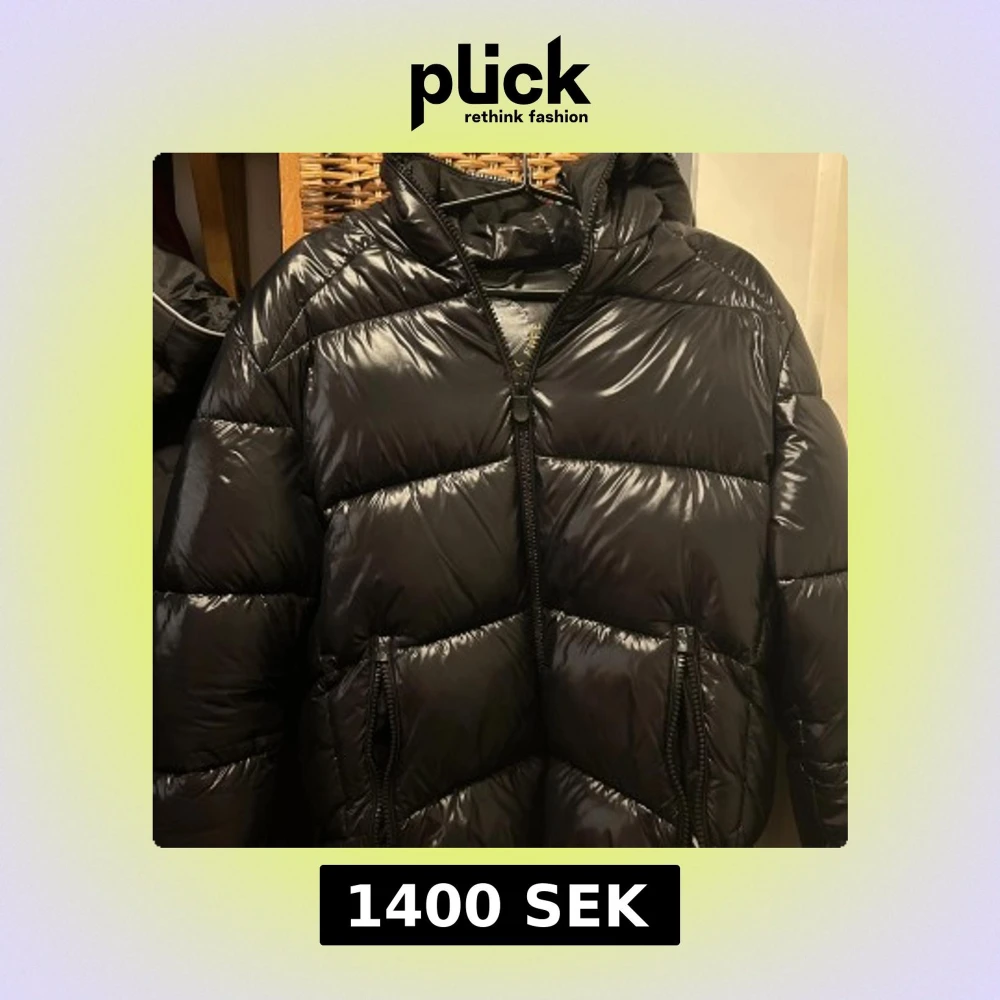 Säljer en svart, glansig pufferjacka från Save The Duck med huva och rejäla dragkedjor. Jackan har quiltad design och två sidofickor med dragkedja. Perfekt för kalla dagar