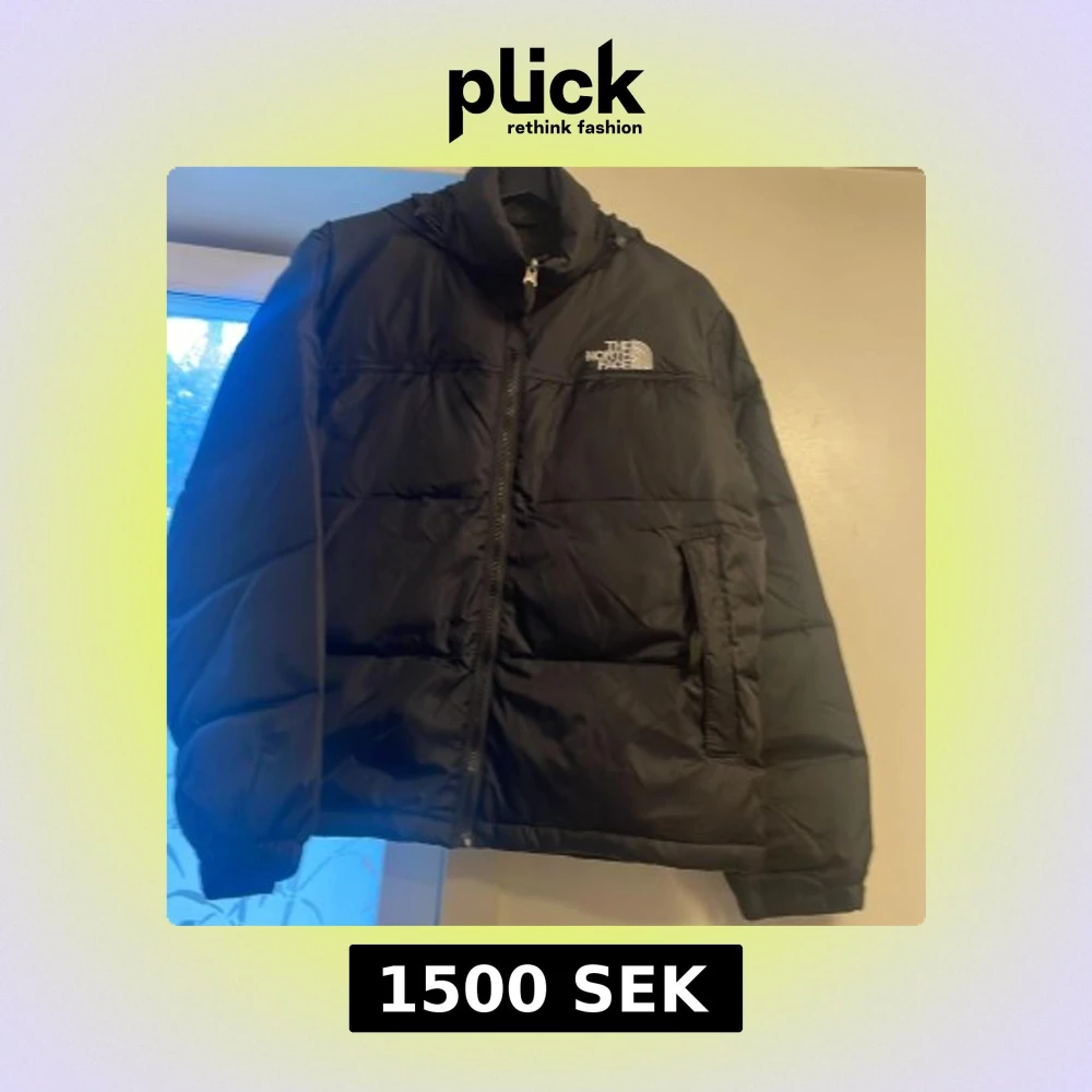 Svart pufferjacka från The North Face med broderad logga på både bröstet och ryggen. Jackan har huva, dragkedja framtill och två sidofickor. Den är vadderad och har en loose passform, perfekt för kalla dagar. Osäker om jackan är äkta men ser ut så. Dottern har köpte jackan på nätet, men aldrig använts.
