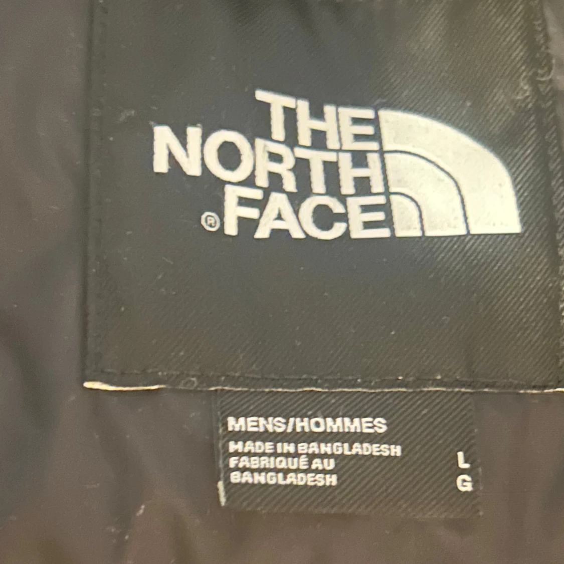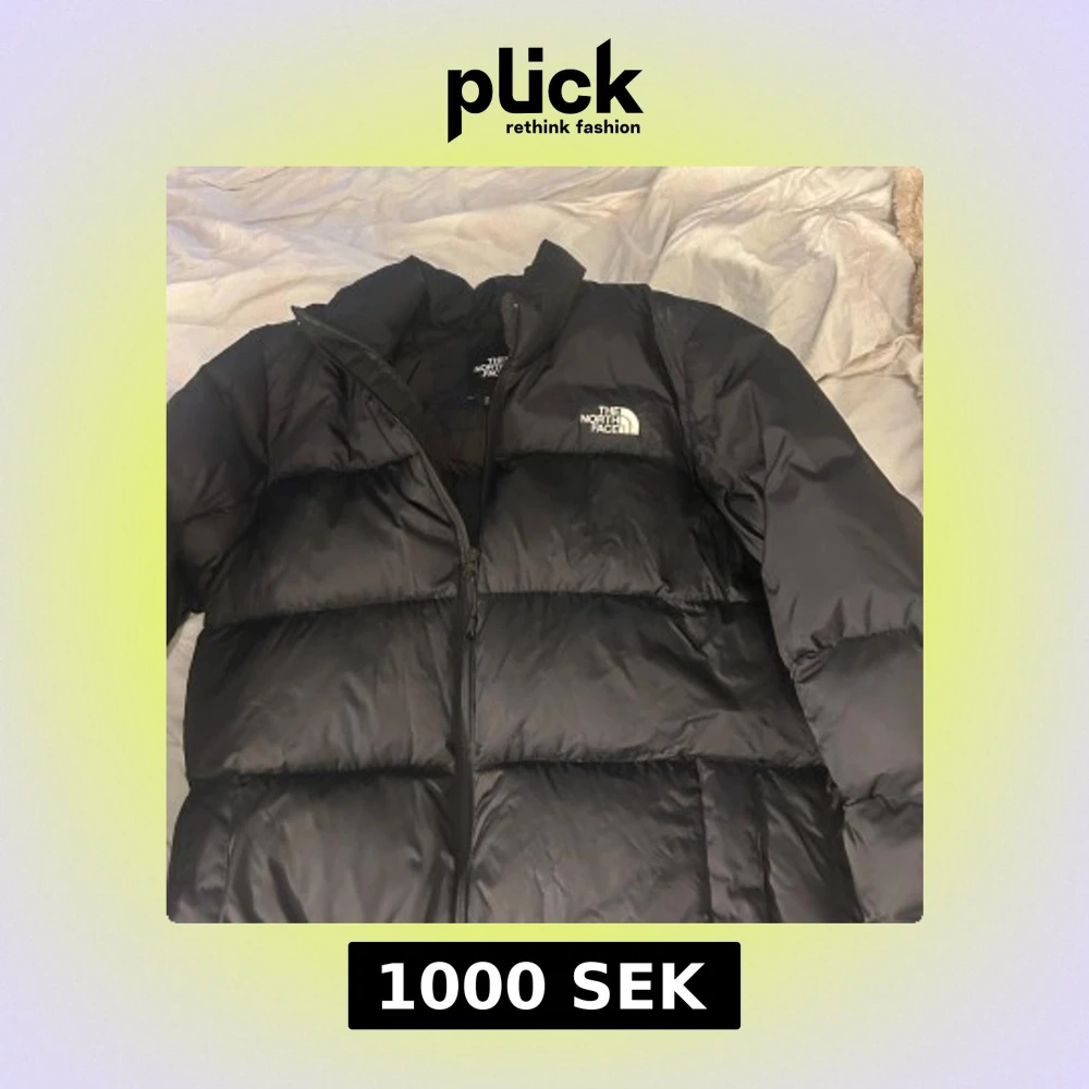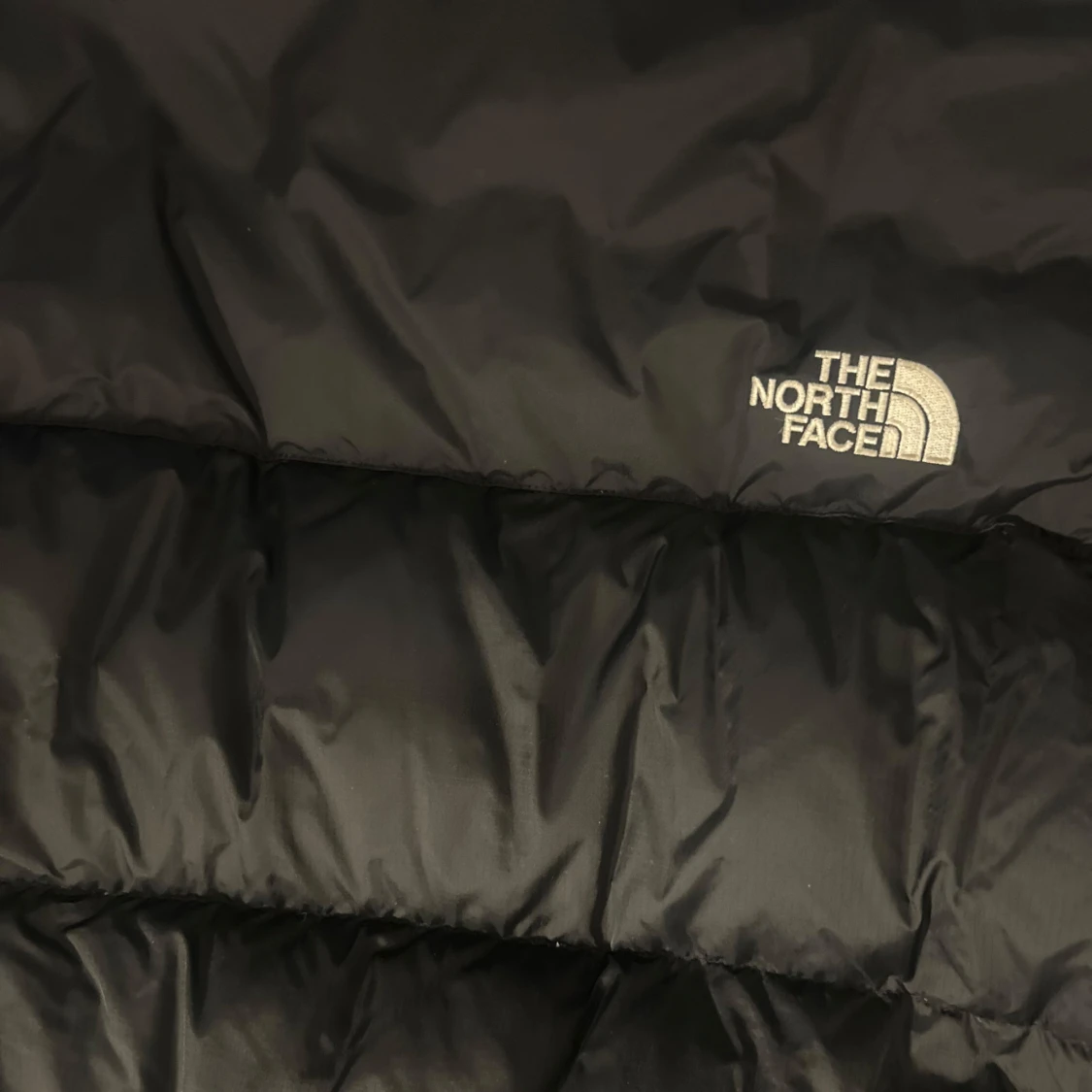 Säljer en svart pufferjacka från The North Face i storlek L. Jackan har ett klassiskt quiltat mönster, hög krage och dragkedja framtill. Loggan är broderad på bröstet. Perfekt för kalla dagar och har en clean, urban vibe.