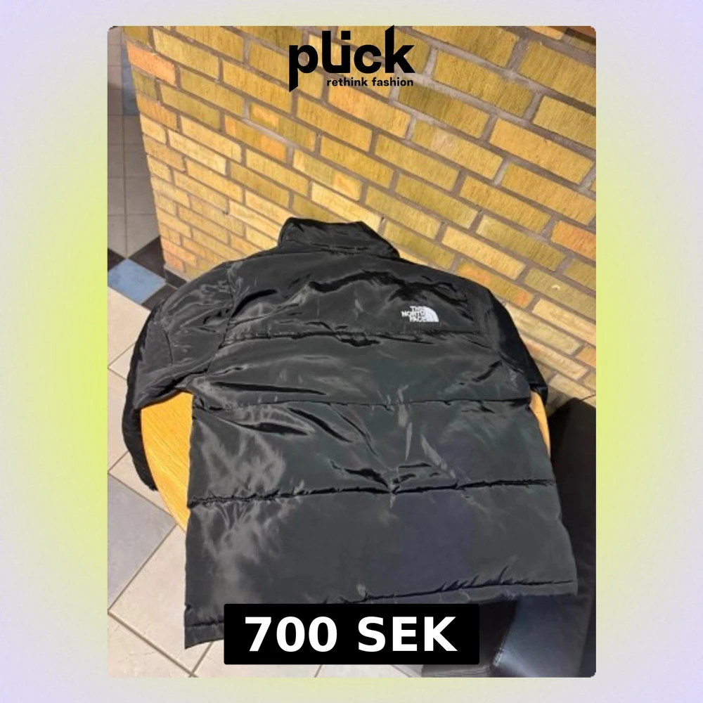 Säljer en svart pufferjacka från The North Face med hög krage och två sidofickor med dragkedja. Jackan har en clean look med logga på bröstet och är tillverkad i glansig polyester. Perfekt för kalla dagar och riktigt snygg till streetwear.