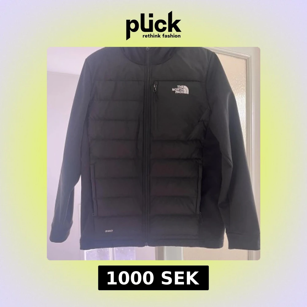 Svart pufferjacka från The North Face med huva och diskret logga på bröstet. Jackan har quiltad framsida, dragkedja hela vägen och en bröstficka med zip. Perfekt för kalla dagar och har en clean, sportig look.
