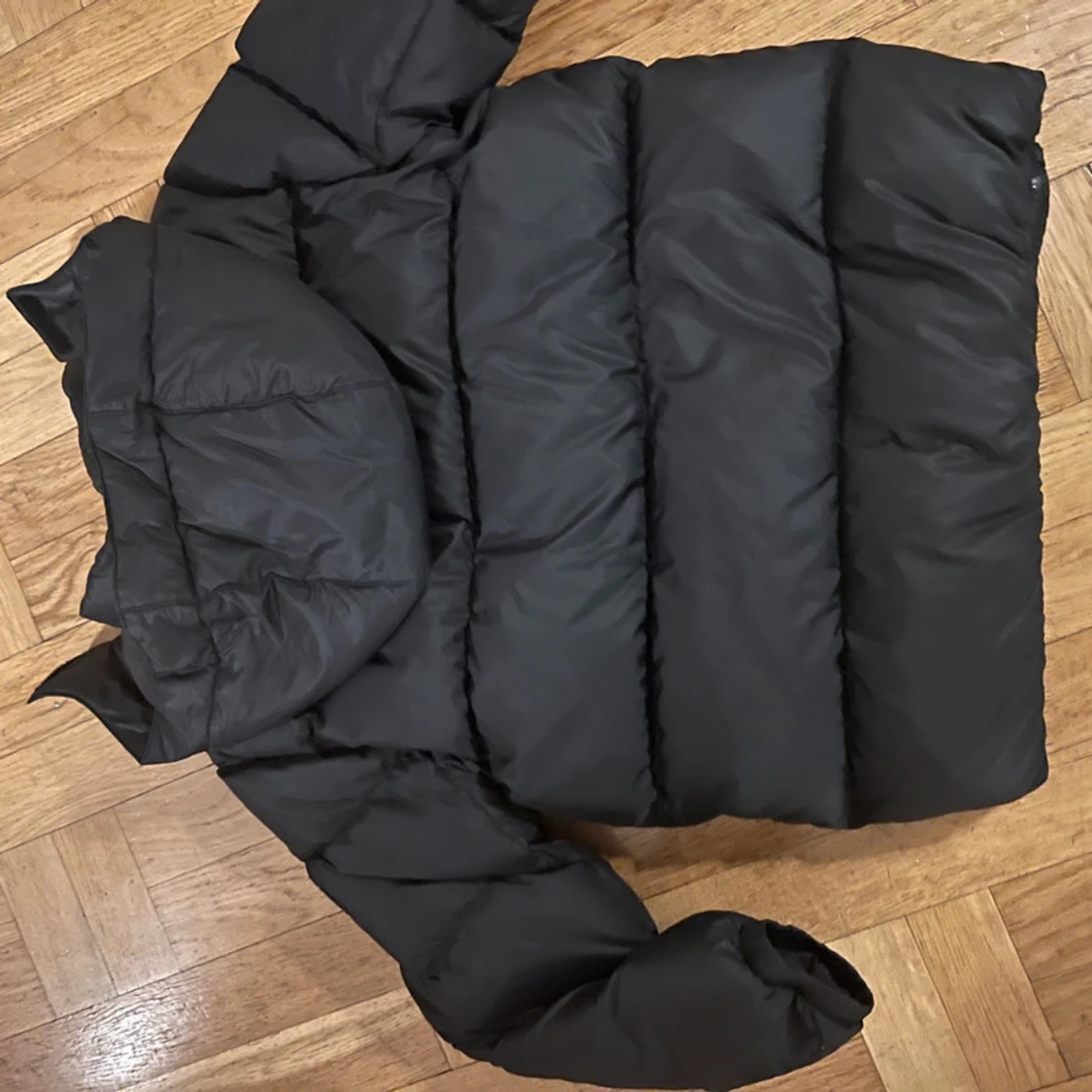 Snygg svart pufferjacka från Tommy Hilfiger med dragkedja och huva. Perfekt för kyliga dagar med sin vadderade design som håller dig varm. Använd fåtal gånger.