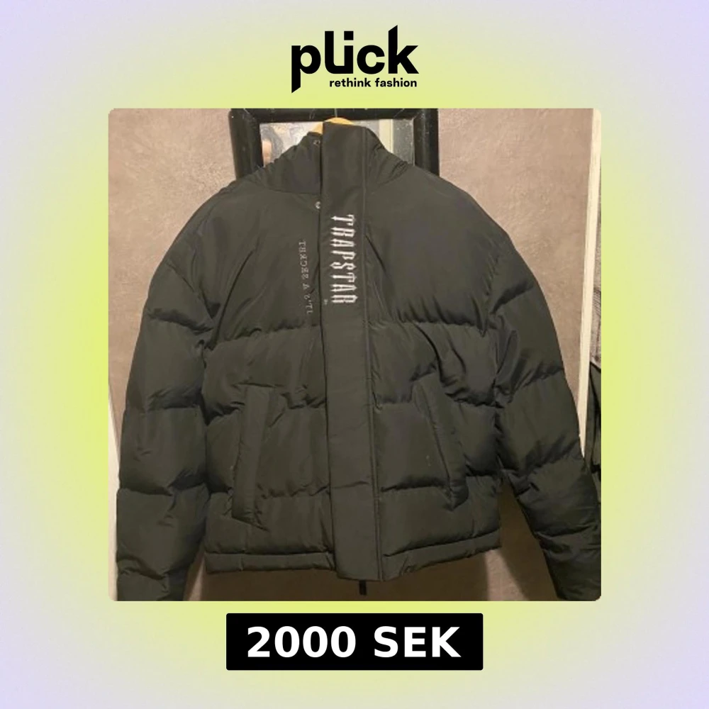 Trapstar pufferjacka i svart med broderad logga på ryggen och huvan, samt texten 'IT'S A SECRET'. Jackan har huva, två sidofickor och dragkedja framtill. Märkespatch på ärmen och coola detaljer som ger jackan en streetwear-vibe.