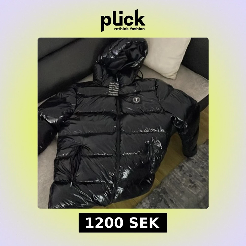 Säljer en svart, glansig pufferjacka från Trapstar. Jackan har en dragkedja och en huva, perfekt för kyliga dagar. Den finns i alla storlekar och har en modern look som passar bra till streetwear-stilen.