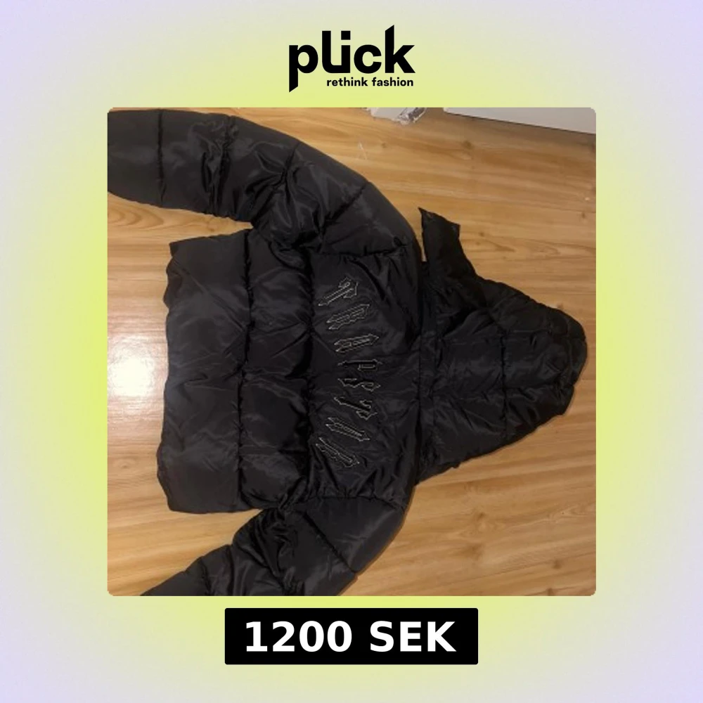 Svart pufferjacka med avtagbar huva och coolt broderat Trapstar-tryck på ryggen. Jackan har dragkedja framtill, fickor med dragkedja och en rund logga på bröstet. Perfekt för kalla dagar och riktigt street i stilen.