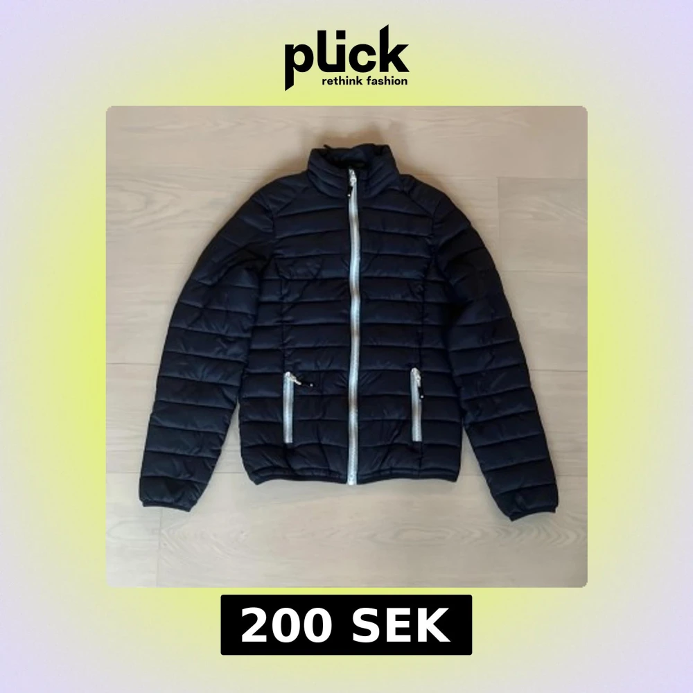 Säljer en svart pufferjacka från Tuxer med hög krage och silverfärgade dragkedjor. Jackan har två fickor framtill och är quiltad för extra värme. Perfekt för kyliga dagar och enkel att matcha med olika outfits.