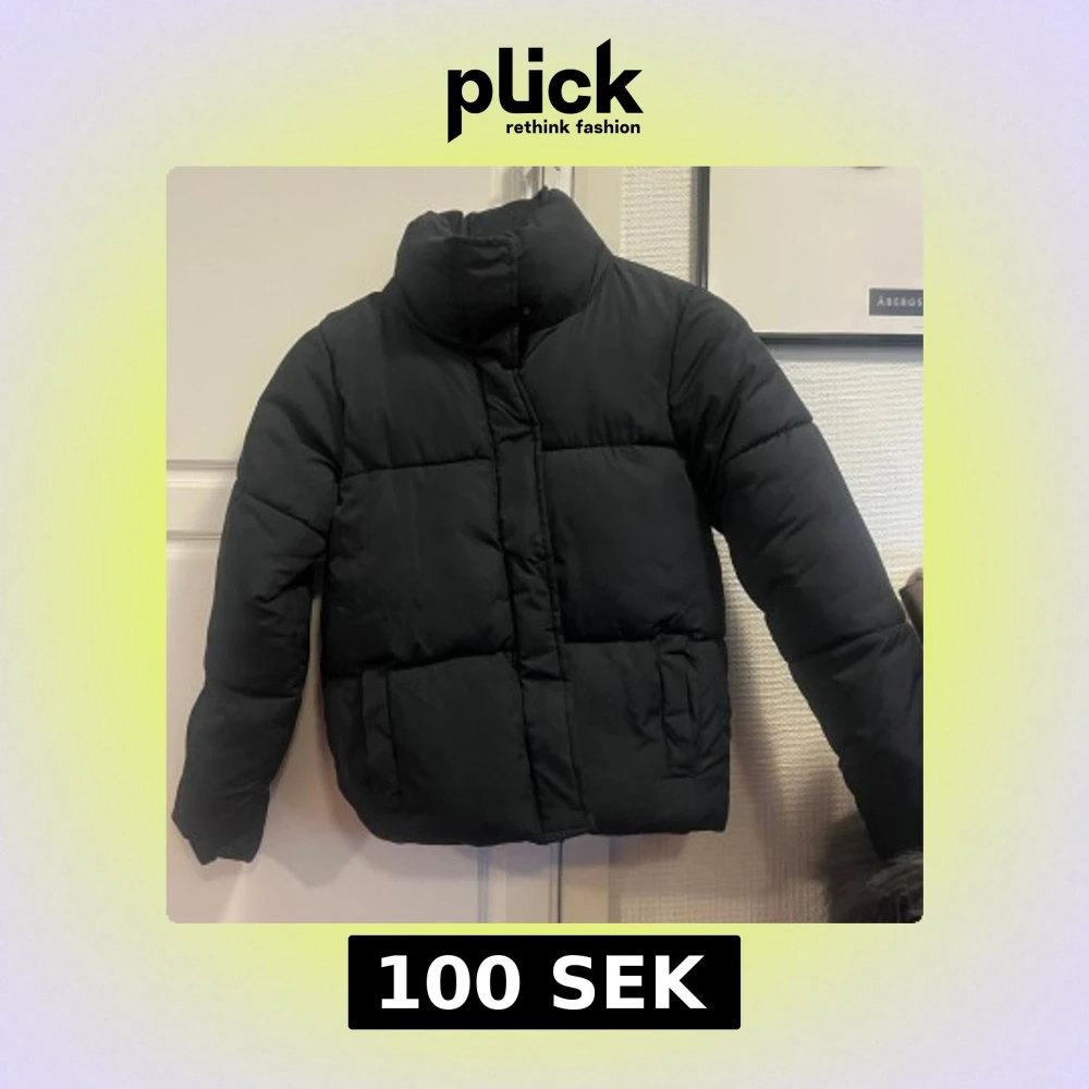 Säljer en stilren svart pufferjacka med hög krage och dragkedja. Perfekt för kyliga dagar när du vill hålla värmen utan att kompromissa med stilen. Storlek 150 men passar xs